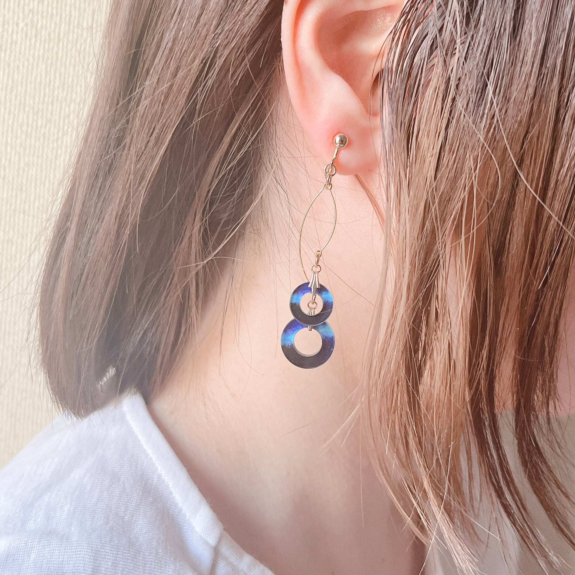 シンプルな円形アクリル(直径12mmと15mm)を組み合わせた優しいフォルムのアクセサリーです。