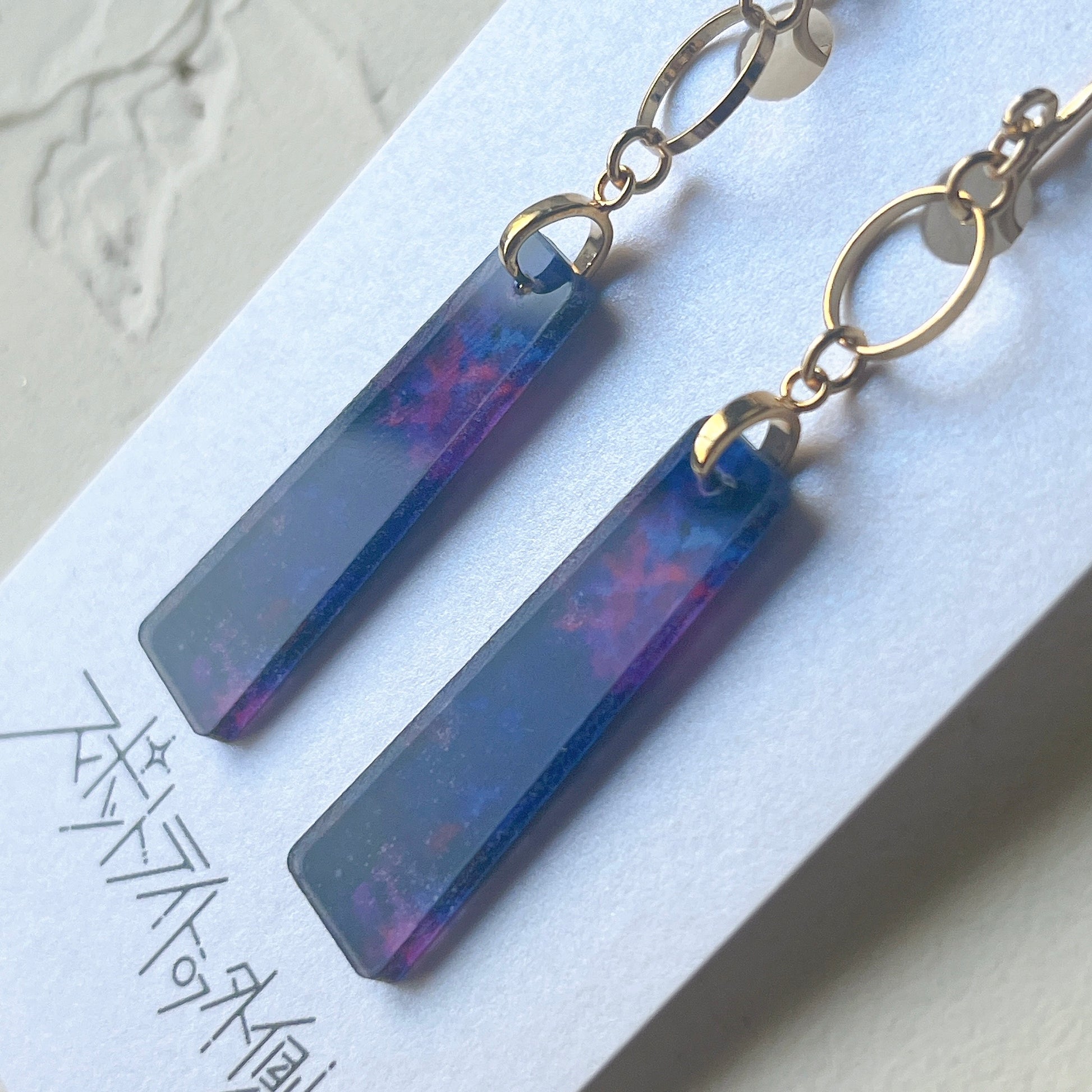 夜空の奥に広がる、まだ誰も知らない景色をイメージして描いた絵柄を、アクリルの中に閉じ込めました。
