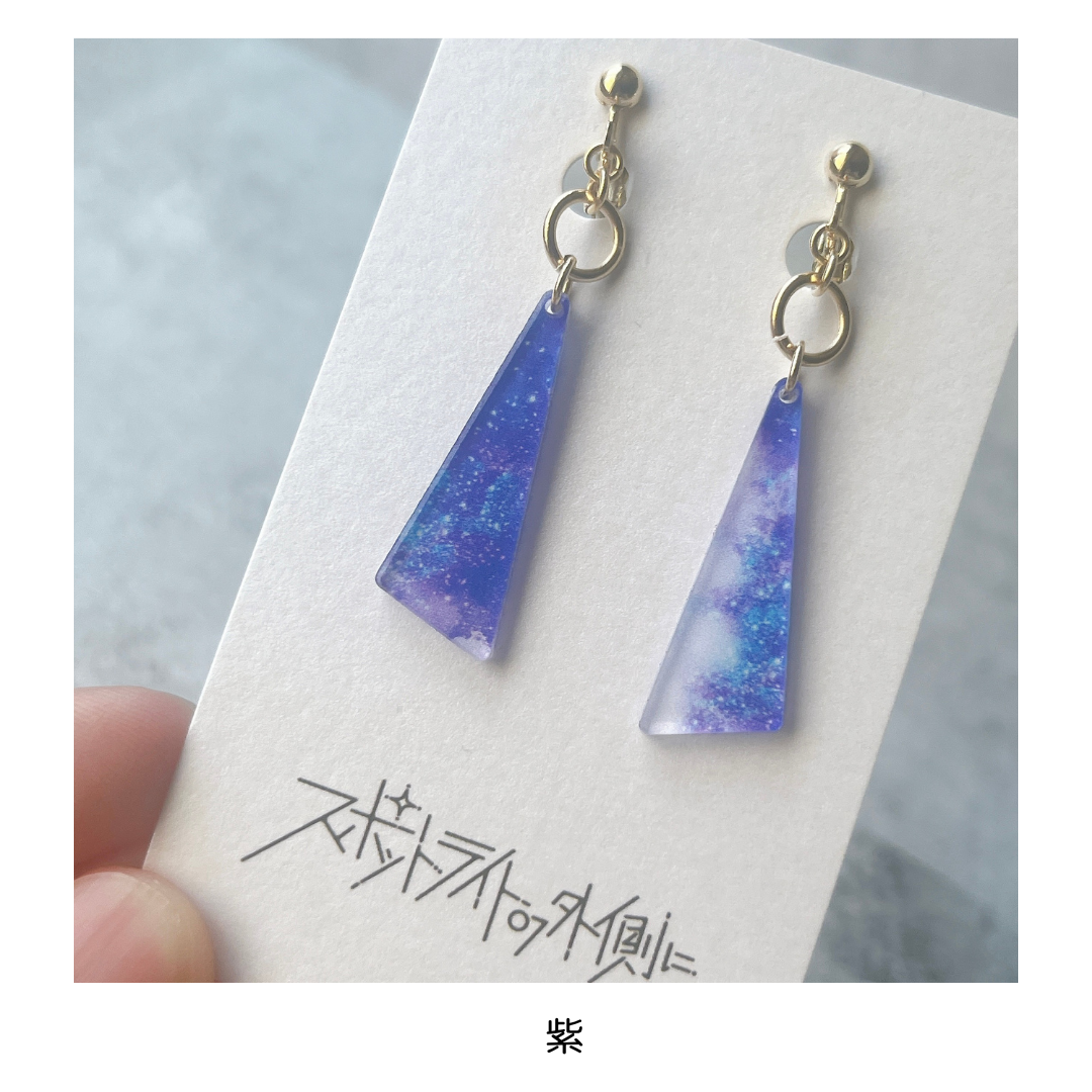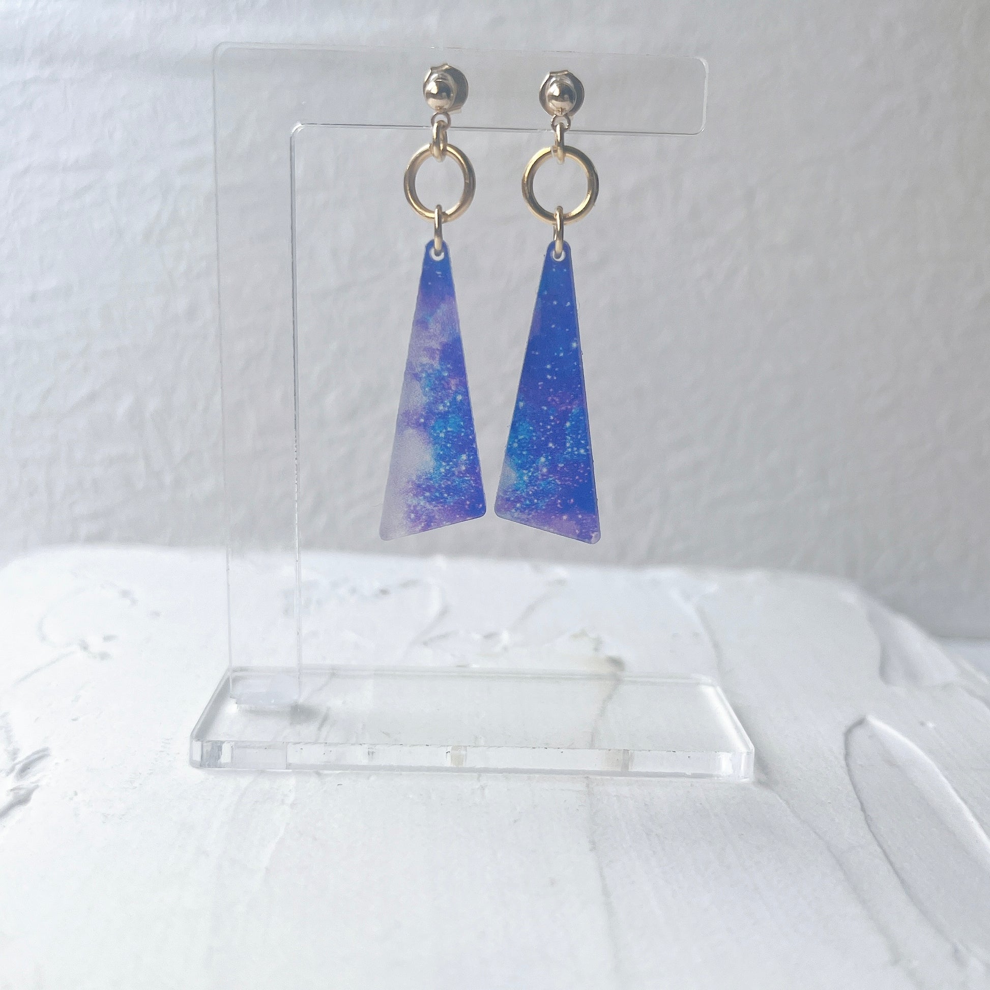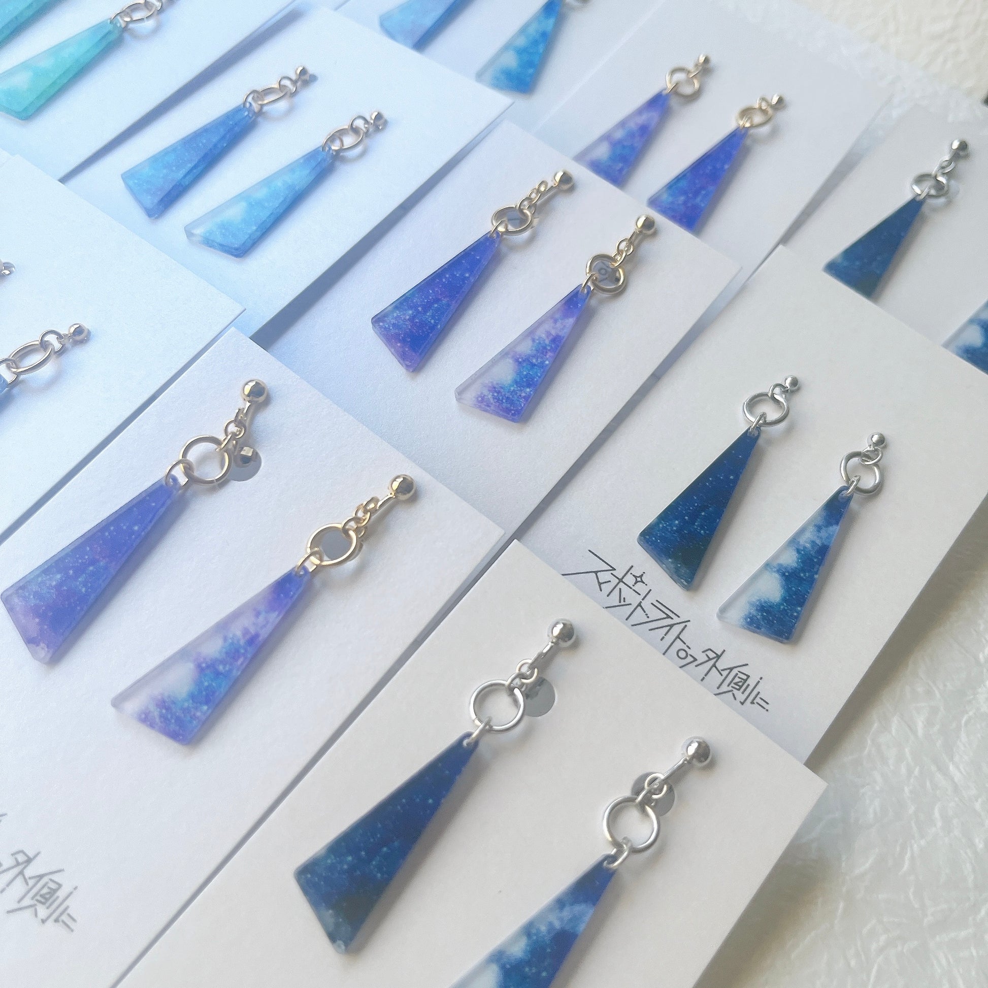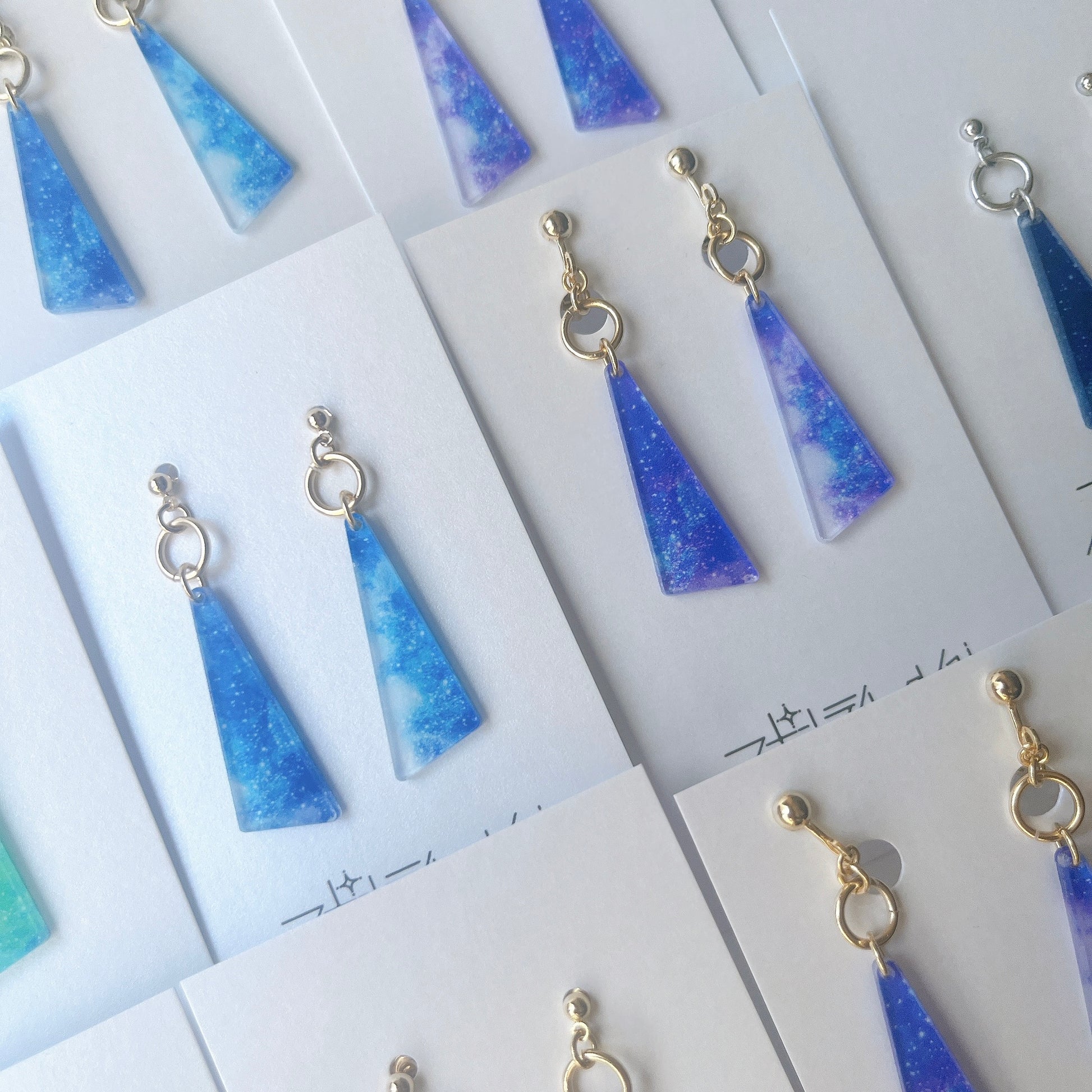 静かな宇宙を閉じ込めたような、シンメトリーの耳飾り「宇宙のカケラ」。