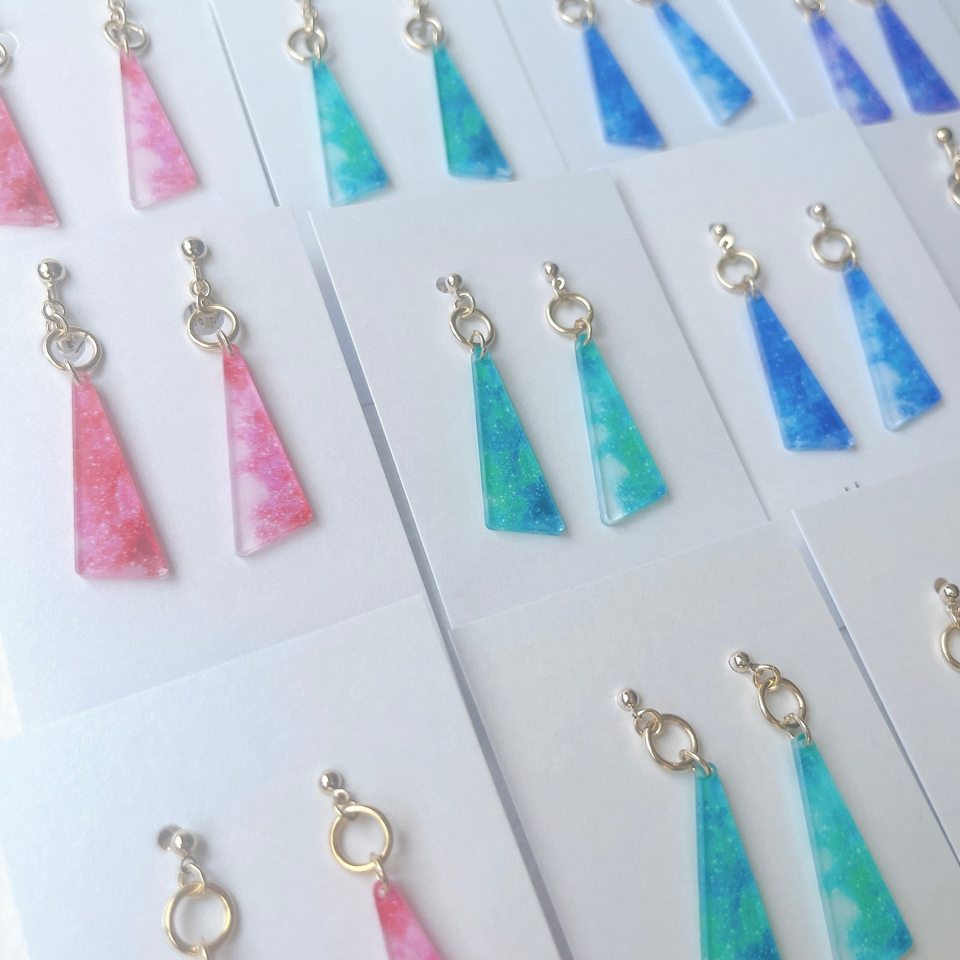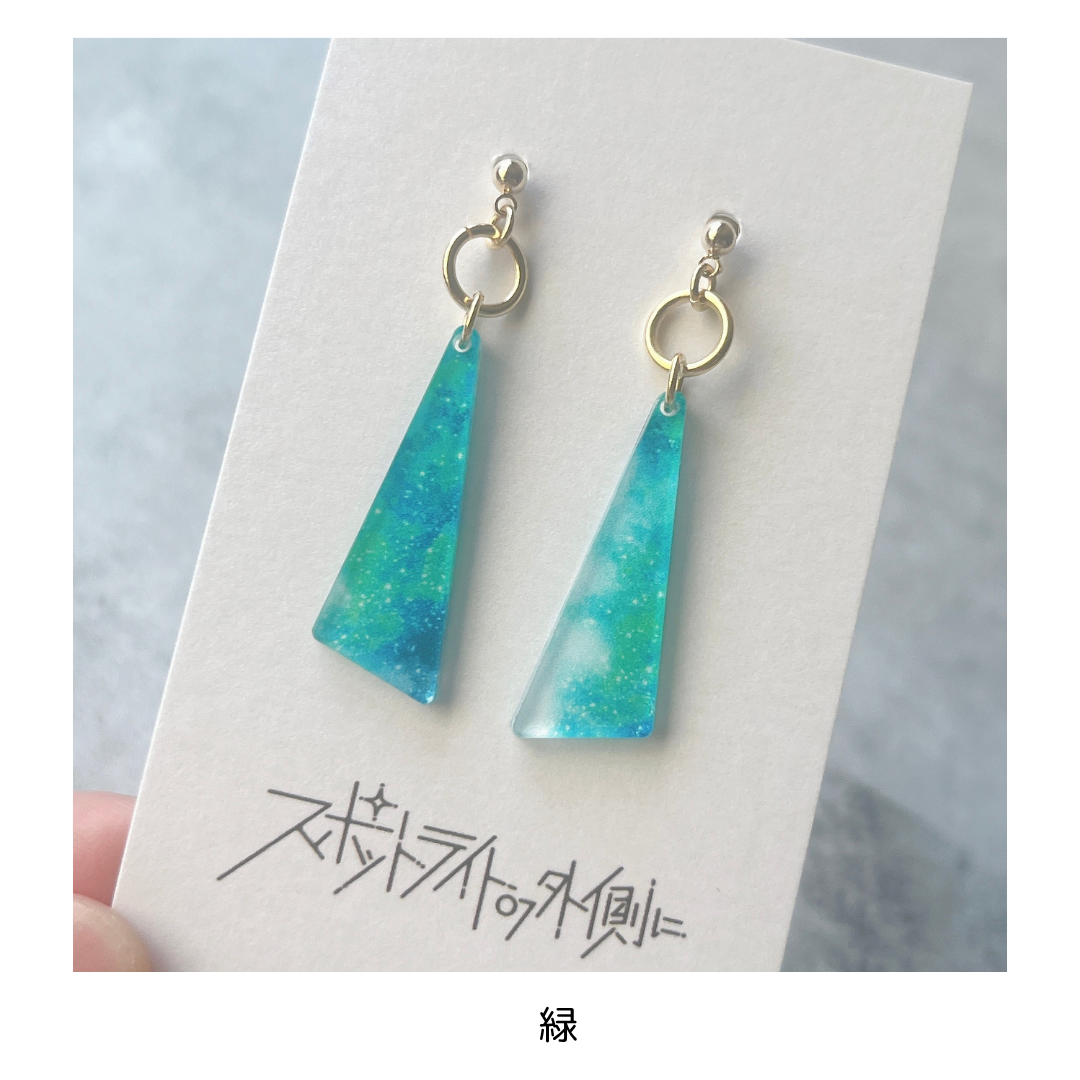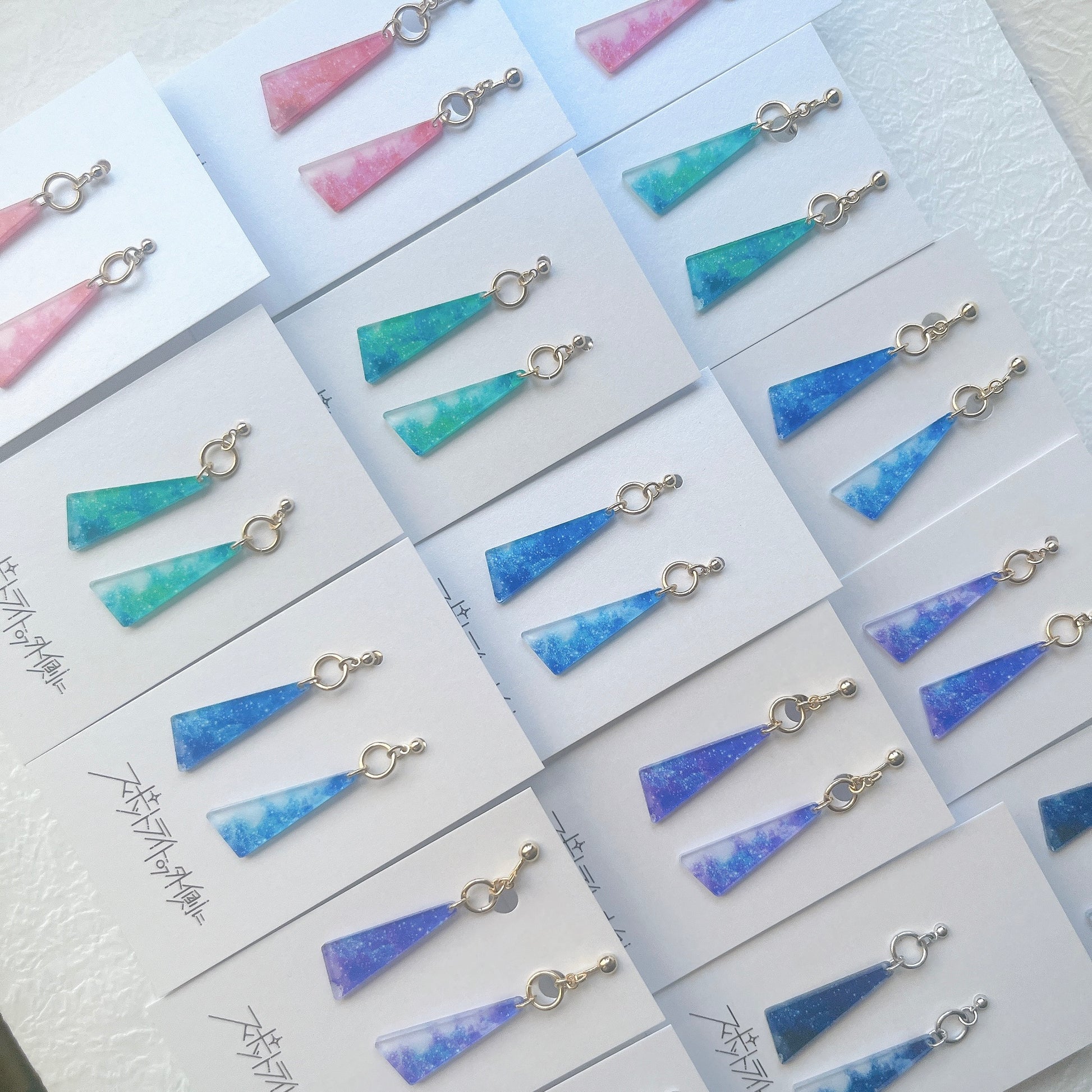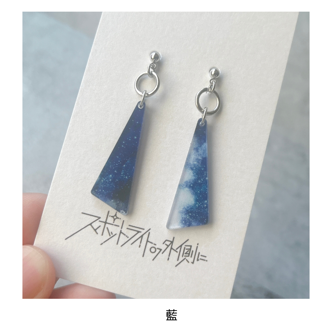 静かな宇宙を閉じ込めたような、シンメトリーの耳飾り「宇宙のカケラ」。