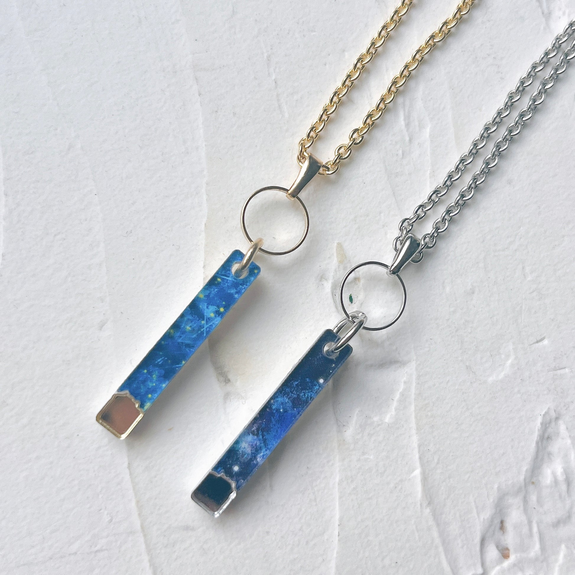 アクリル素材に、夜空を描いた模様がさりげなく輝きます。