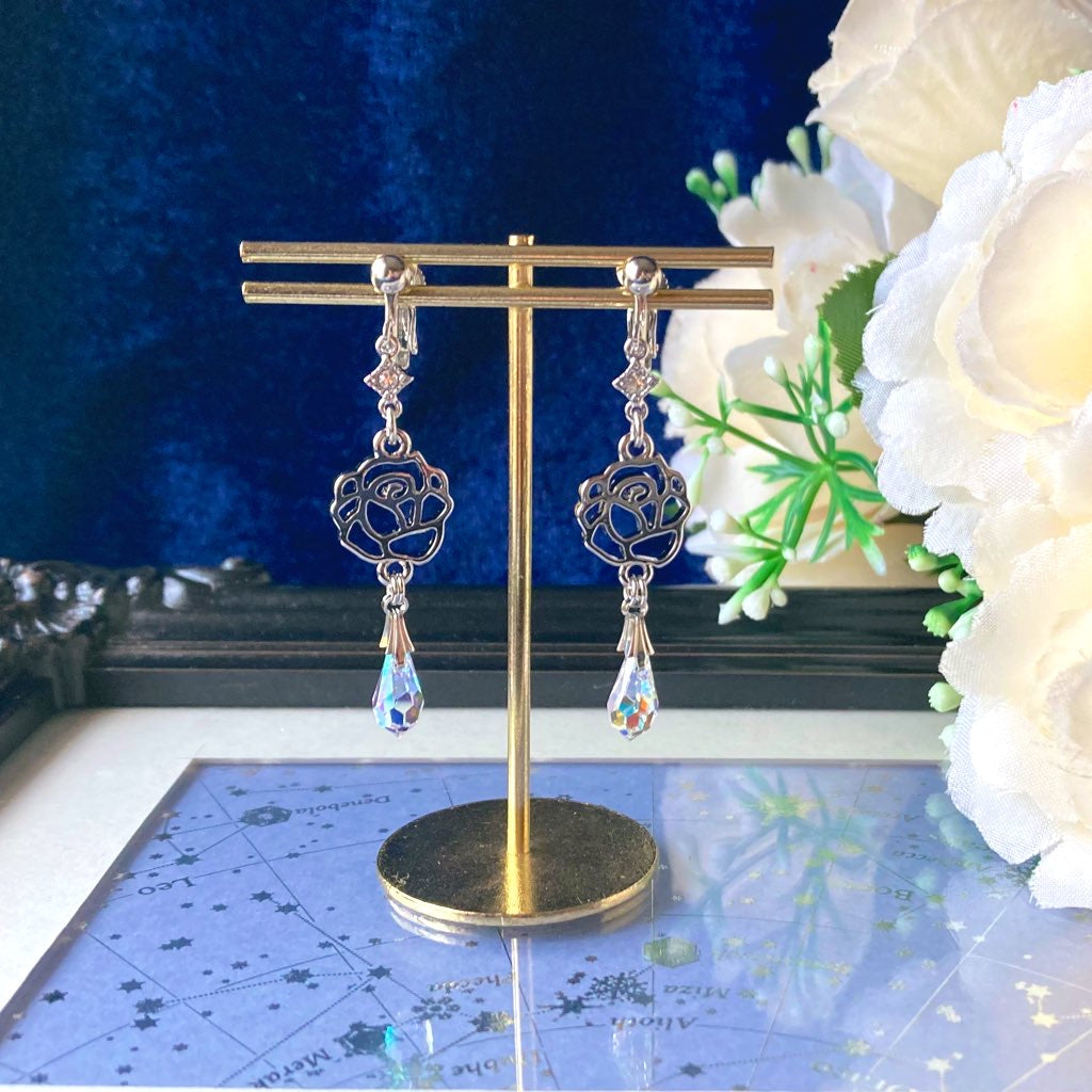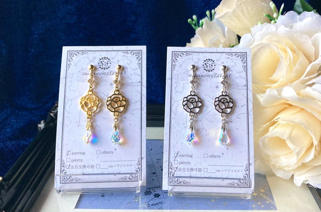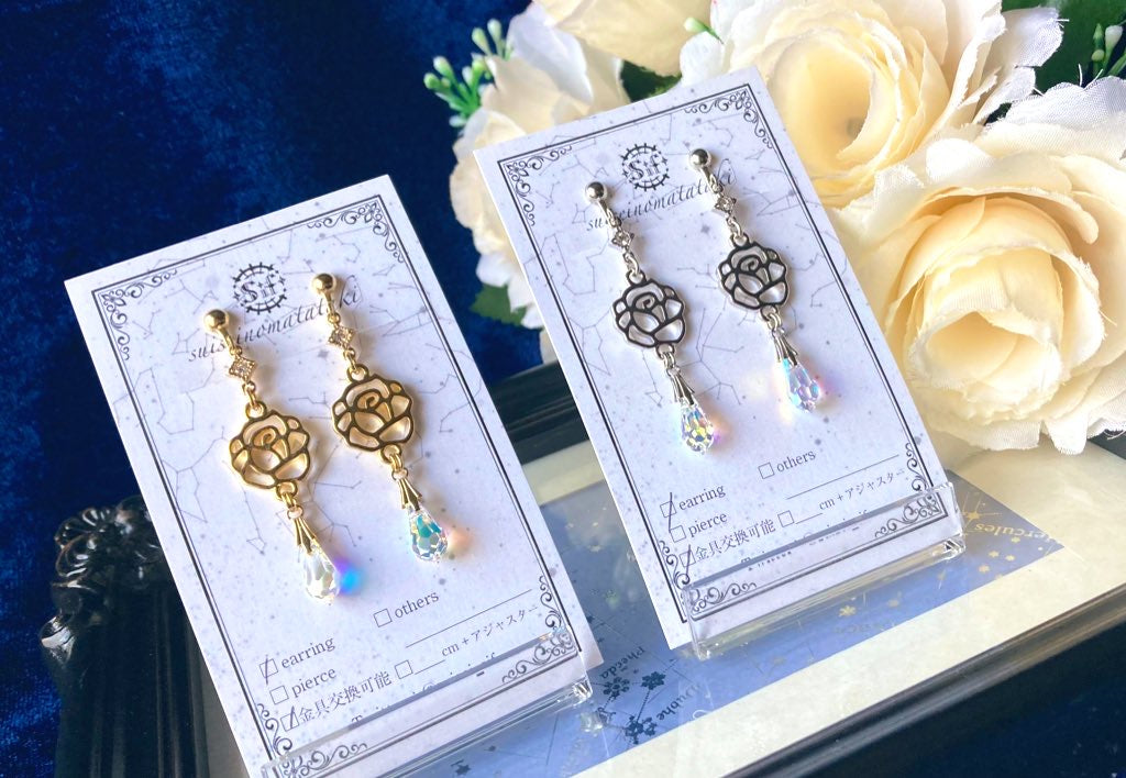 シンプルなバラとしずくの耳飾り。