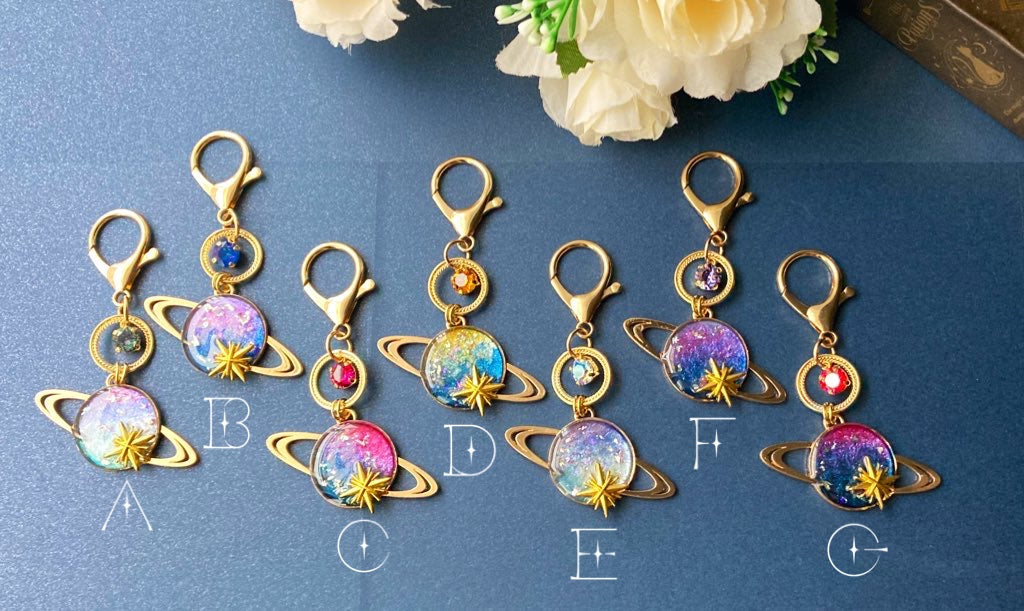 全てレジンの塗りの色とストーンの色の組み合わせを変えている一点もの。