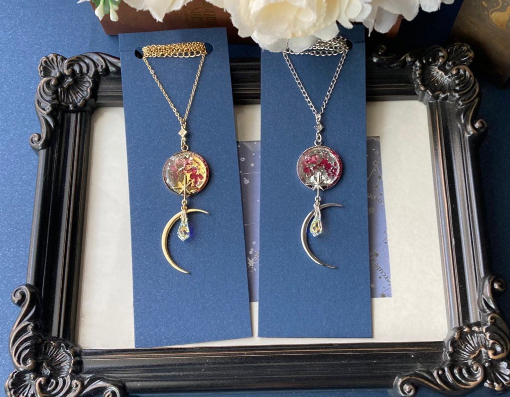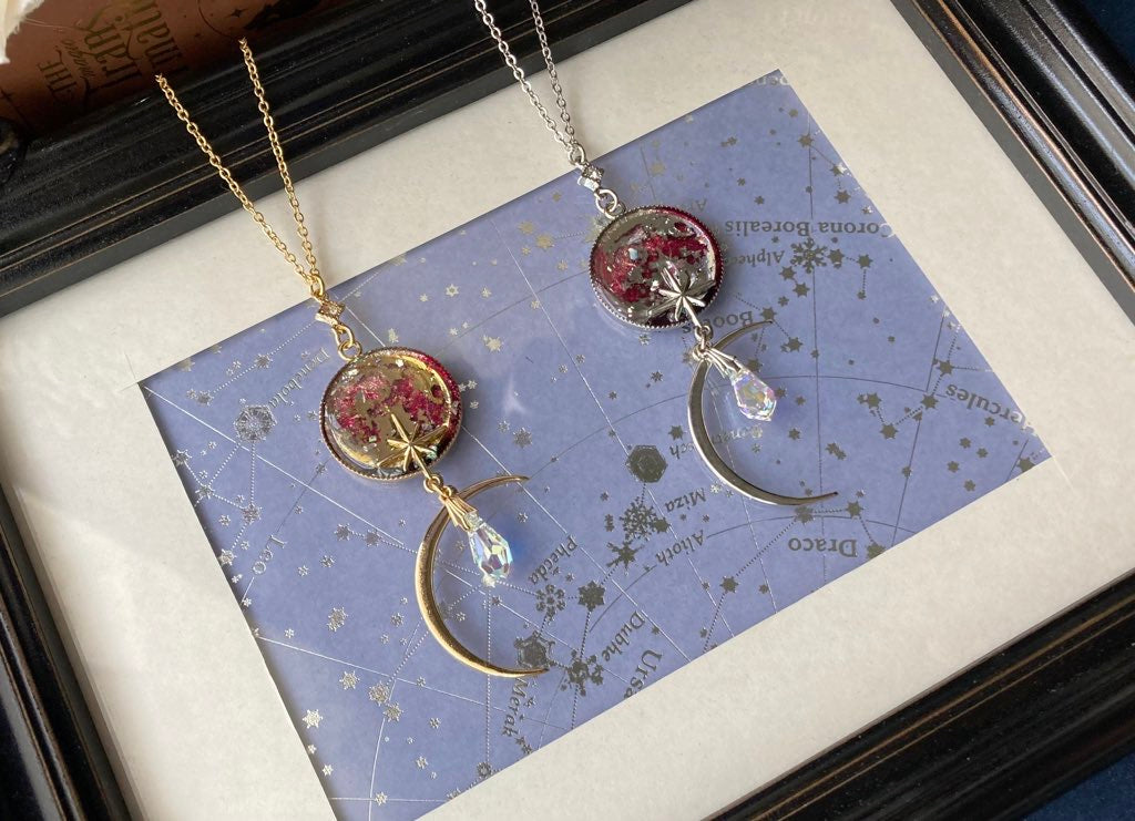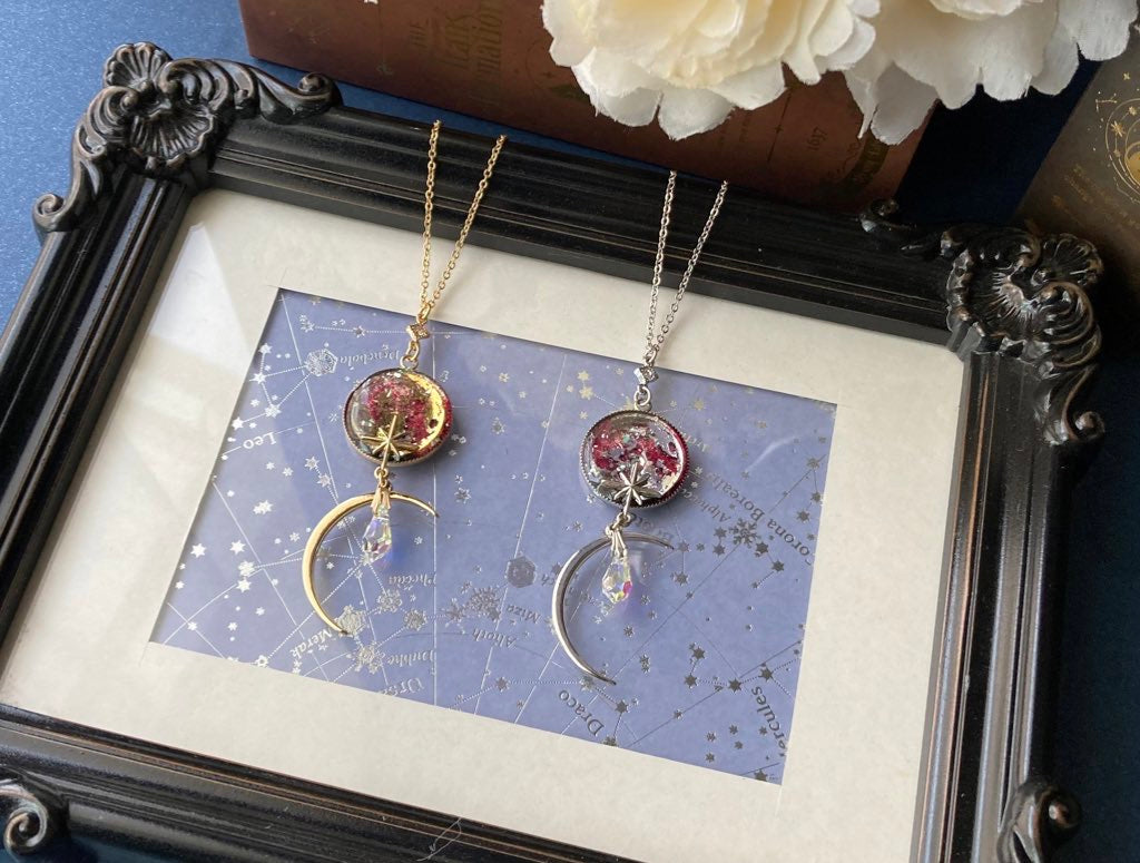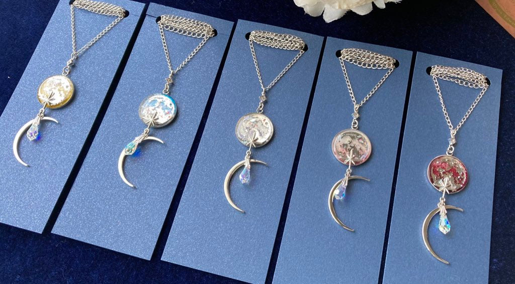 鋭い月光をイメージして、5種類の満月をペンダントにお仕立てしました。