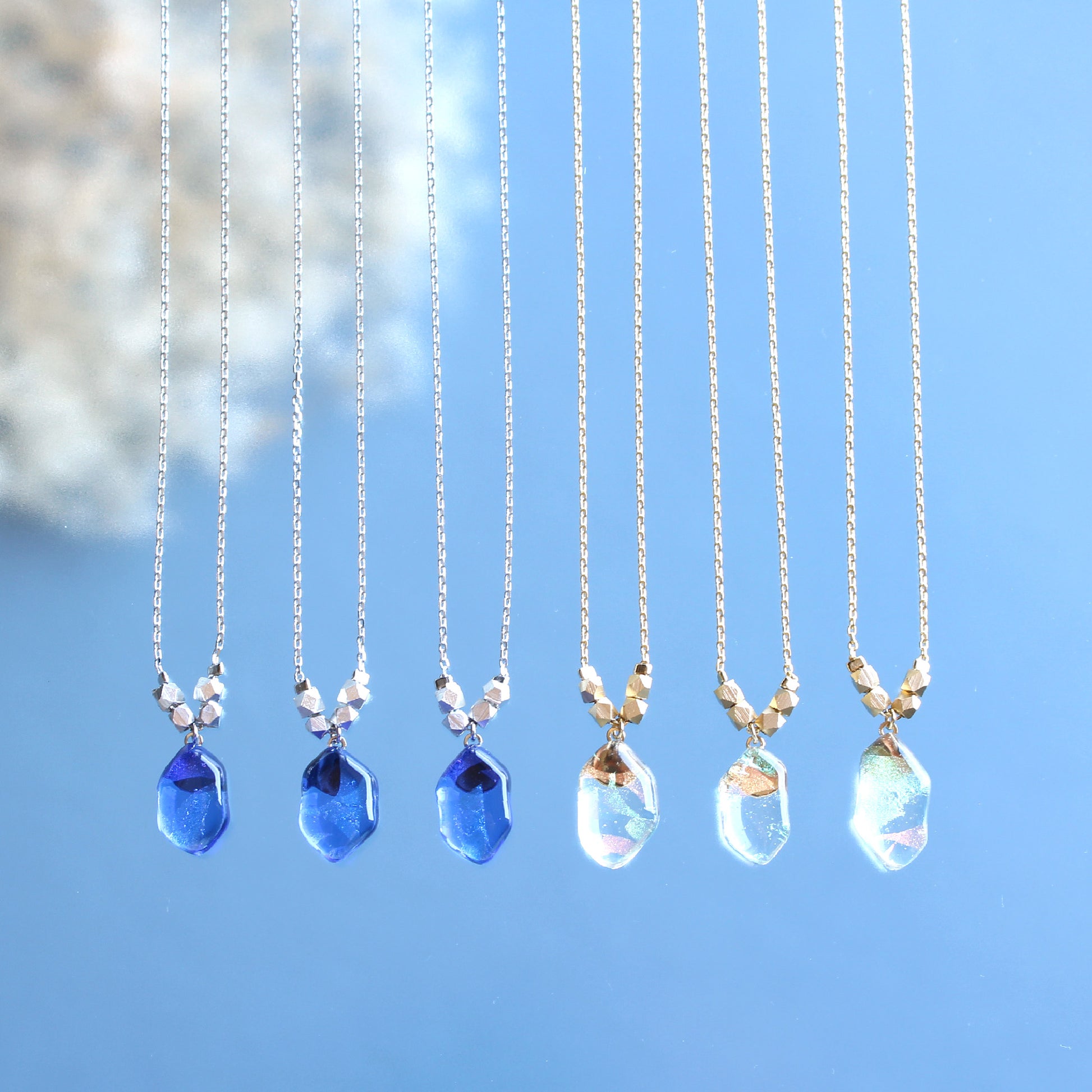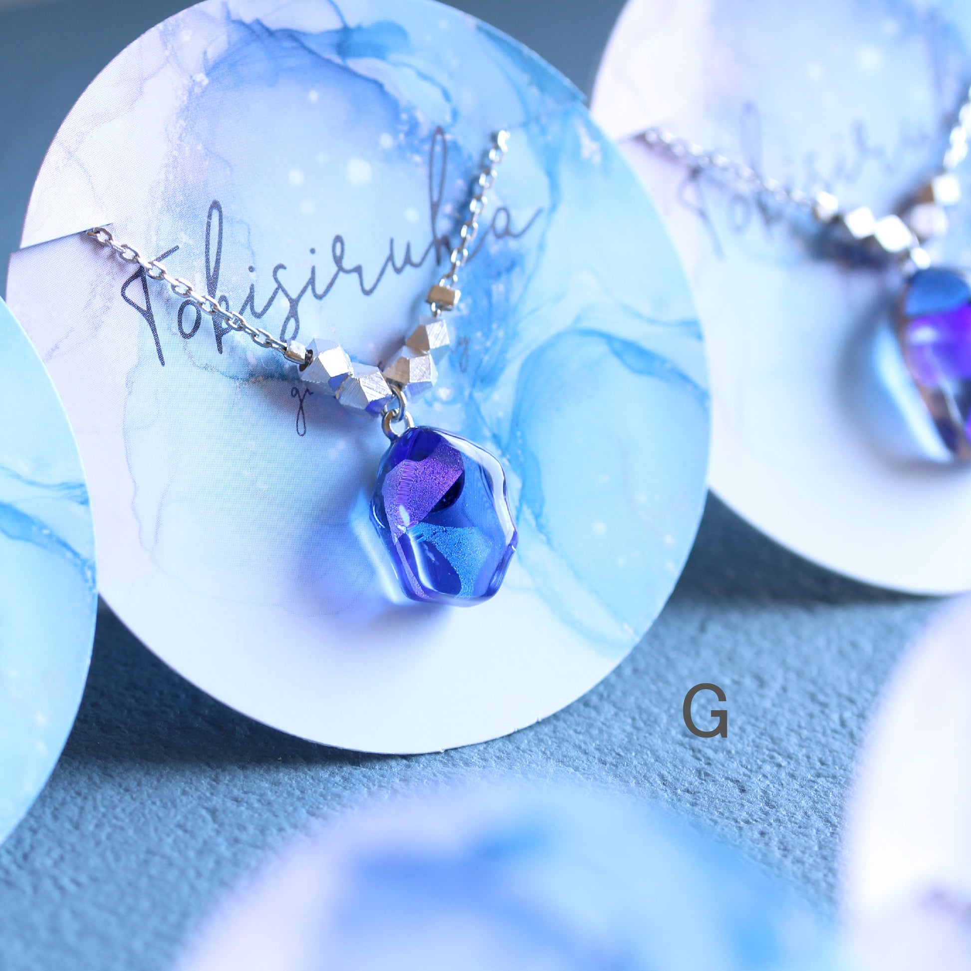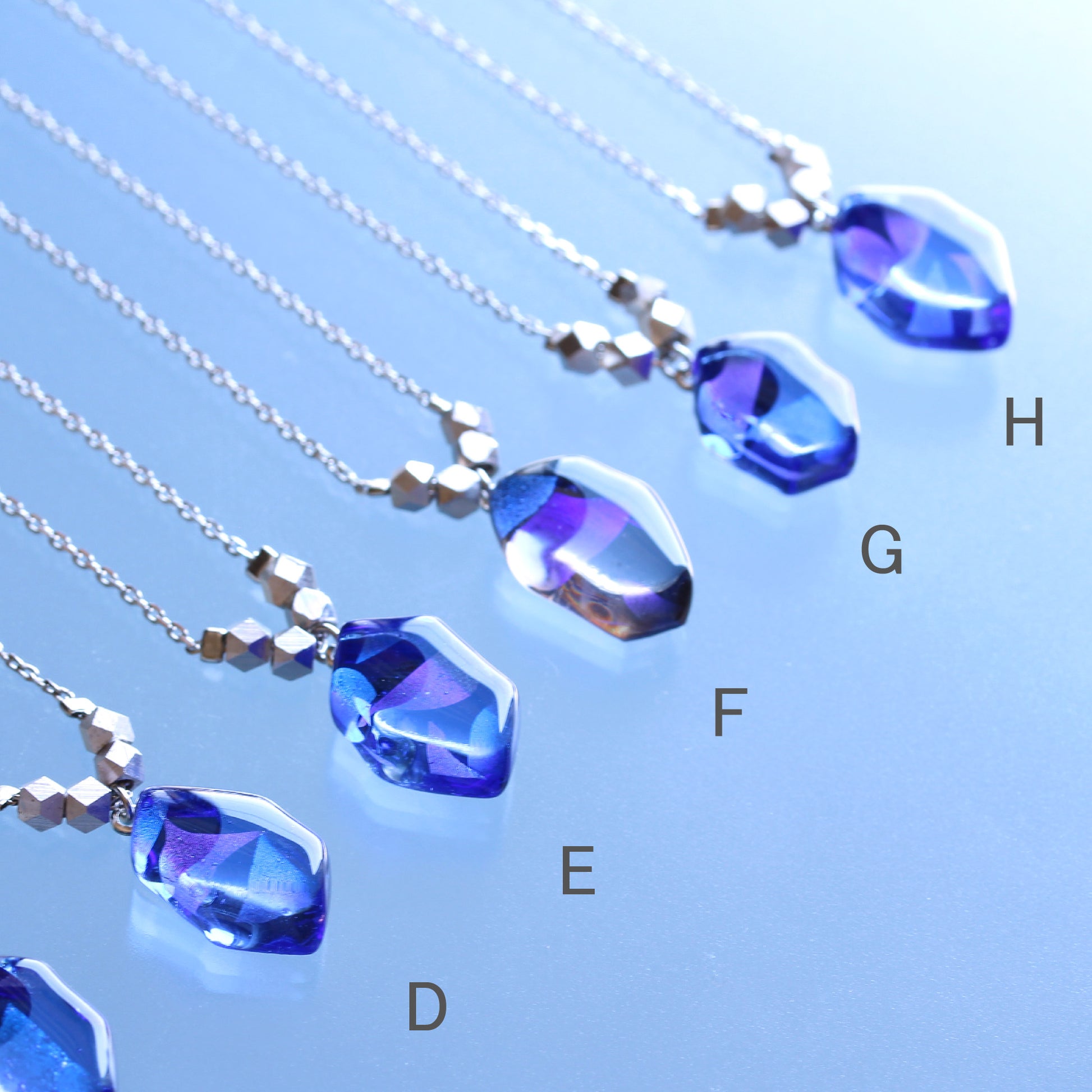 A〜H → 青いガラスがベースになったネックレス。