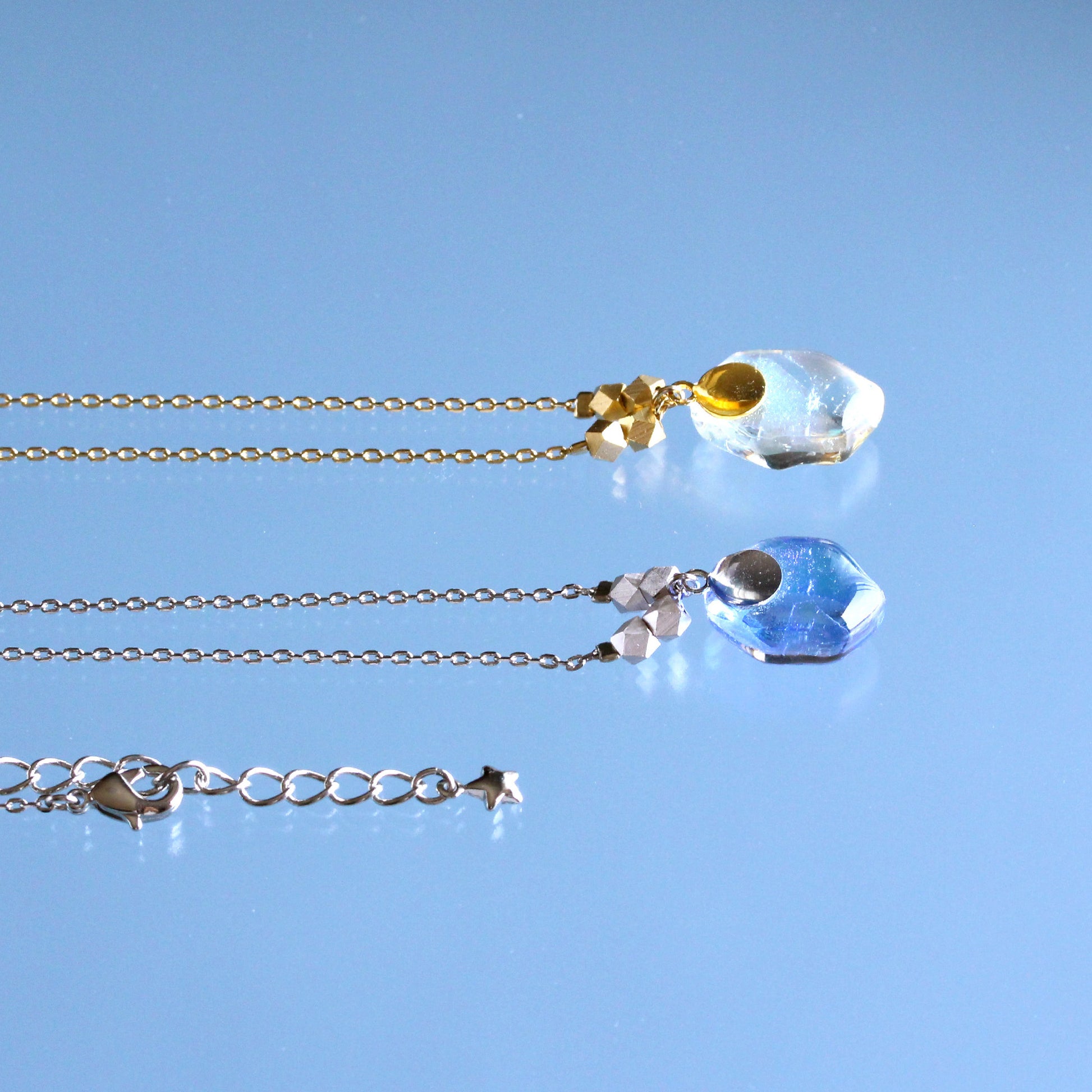 氷石glass ネックレス~ clear / blue ~