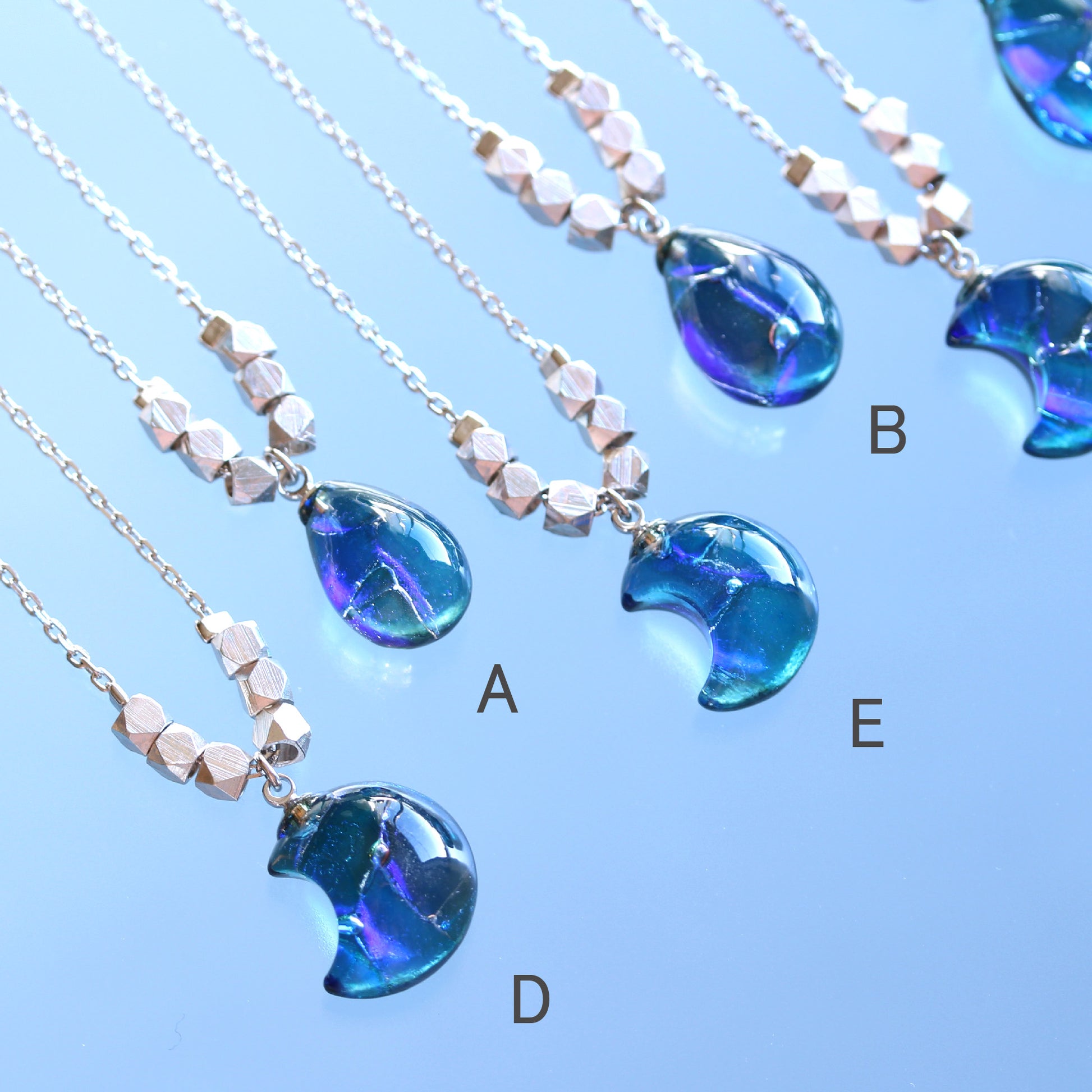 深い海の底を思わせるような青い月として誕生したネックレス。