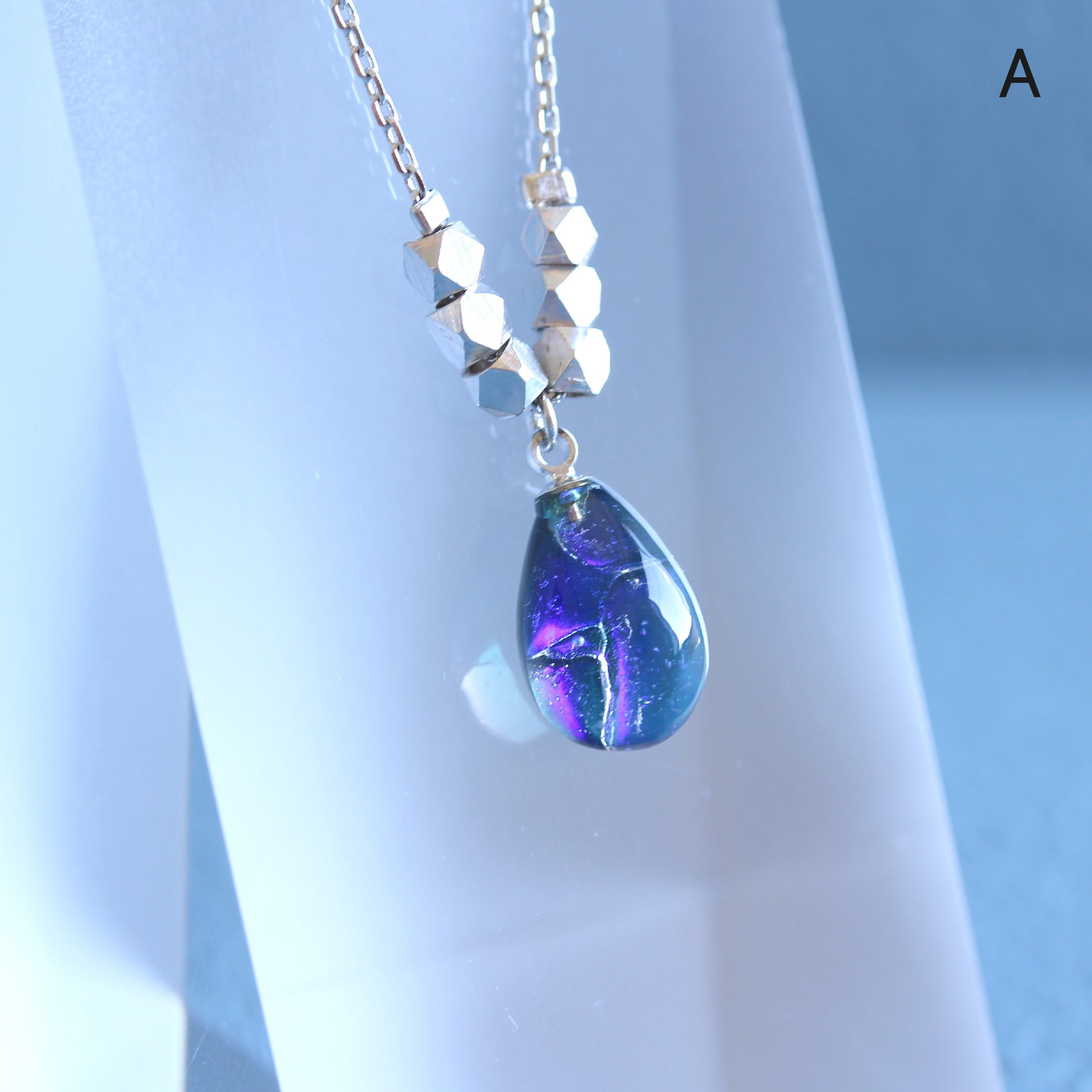 青・紫・緑など見る角度によって変化しキラキラと輝く姿は、まるで海底深くに沈んだ街の面影を映すようです。
