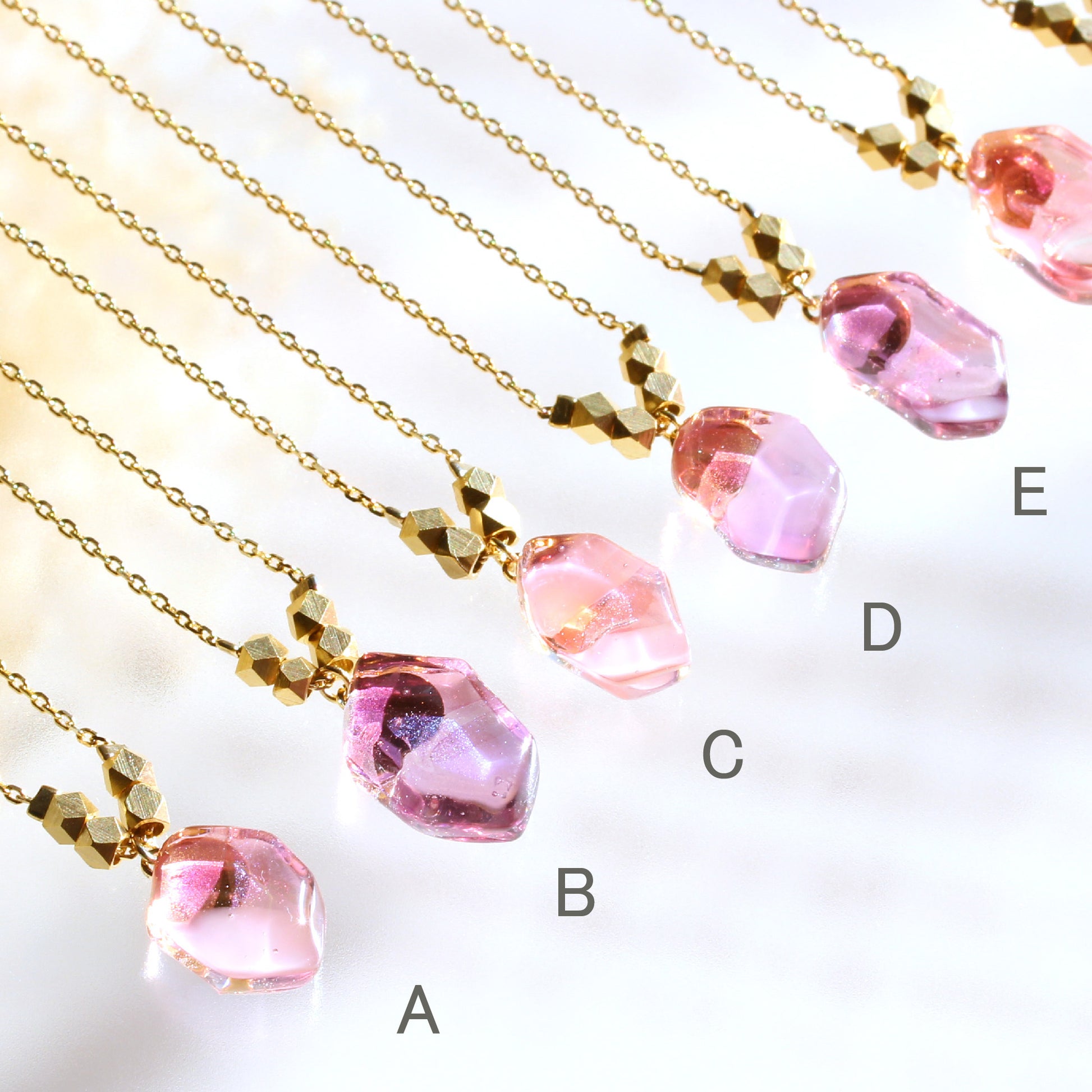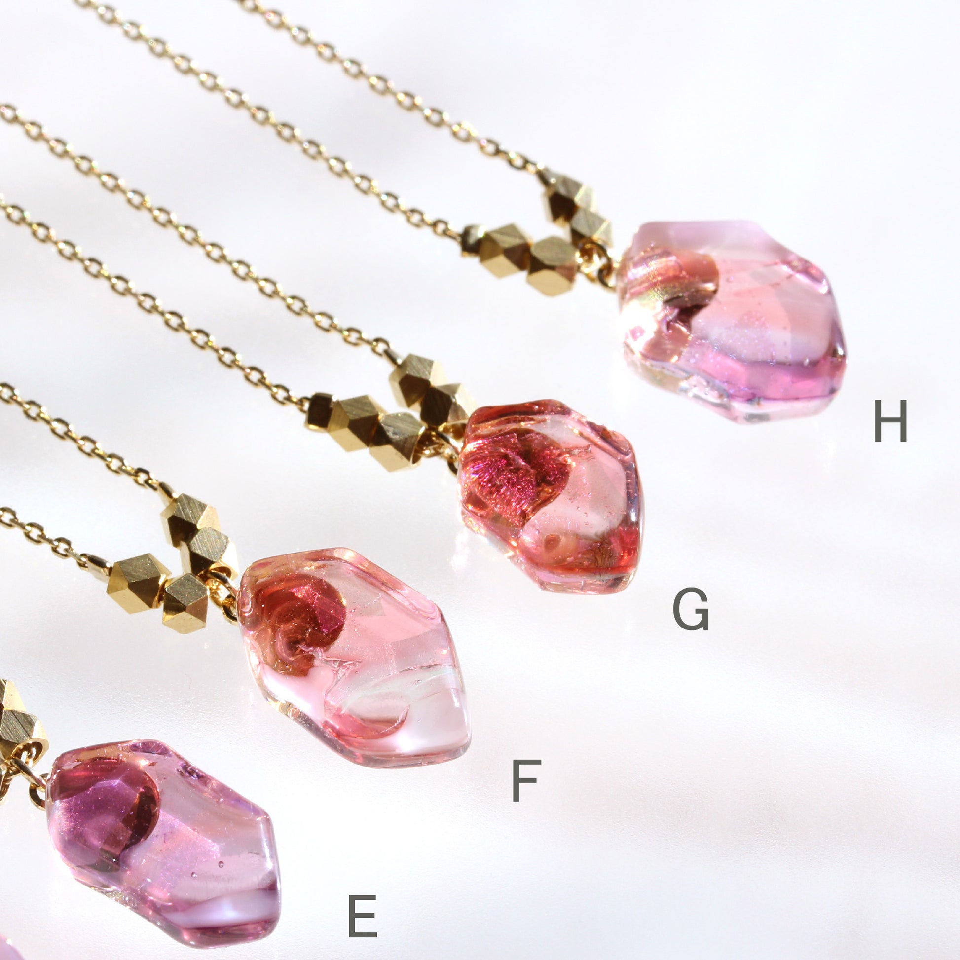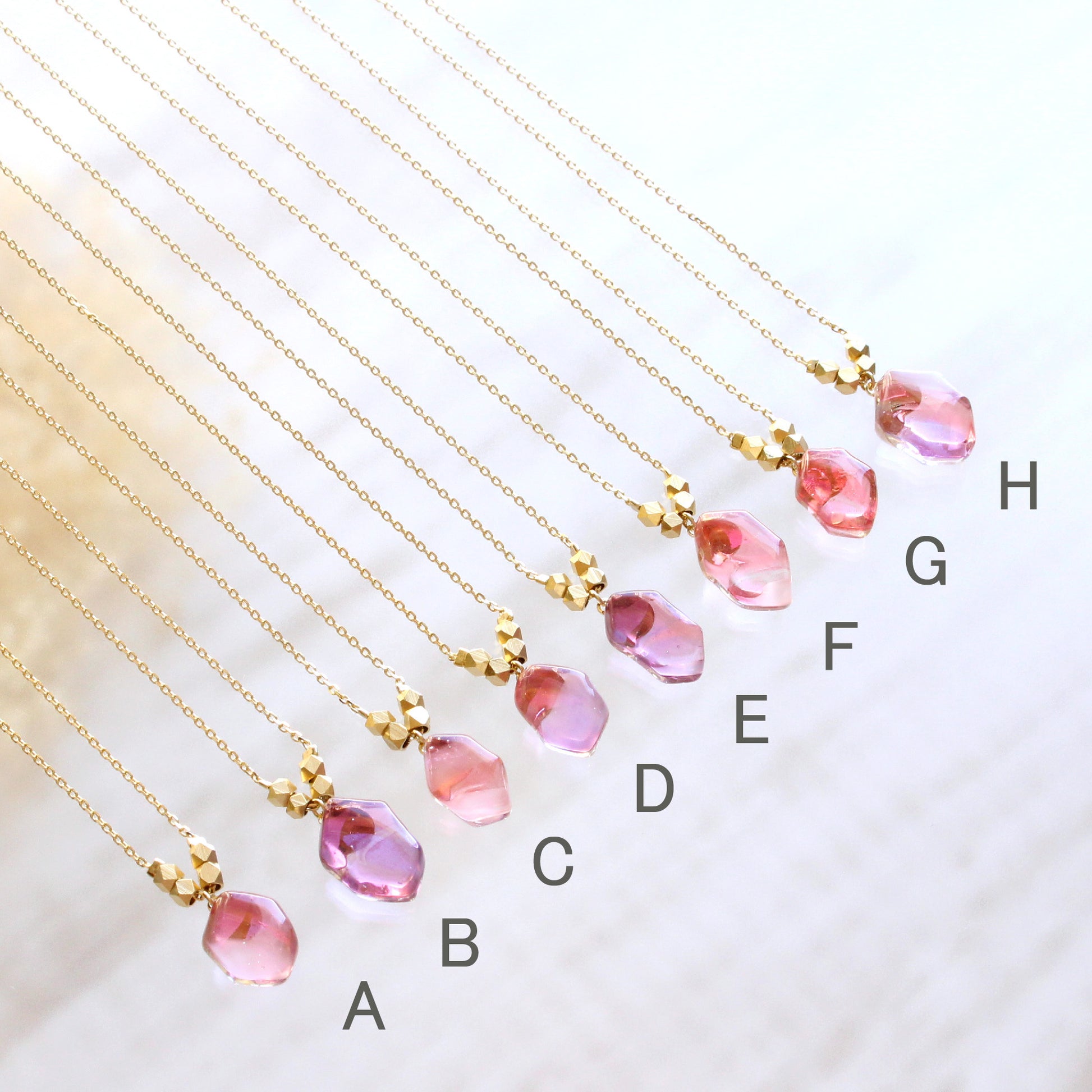 A〜H →「花霞」明るいうす桃色をした桜をイメージしたネックレス。