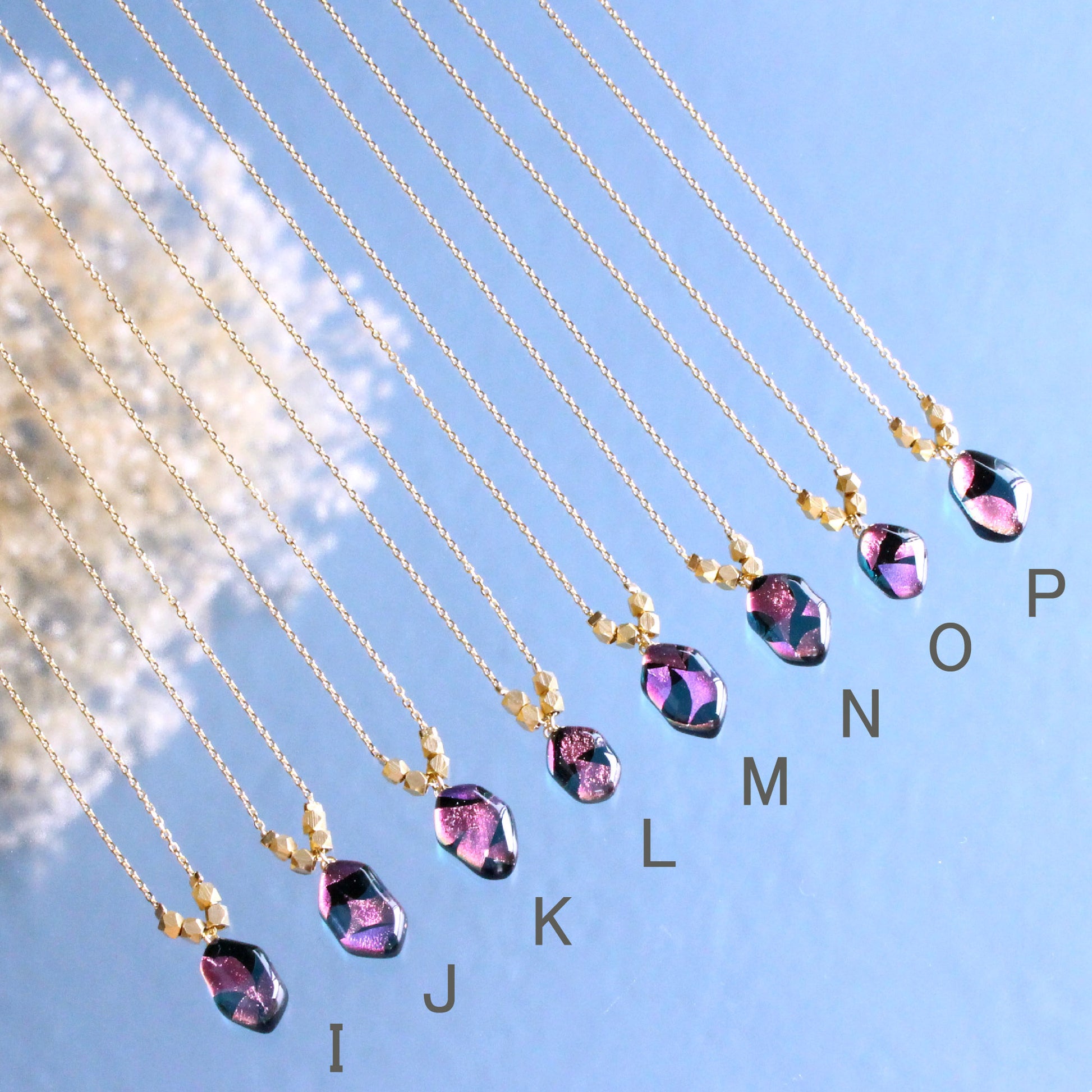 I〜P →「夜桜」神秘的で美しい夜の桜をイメージしたネックレス。