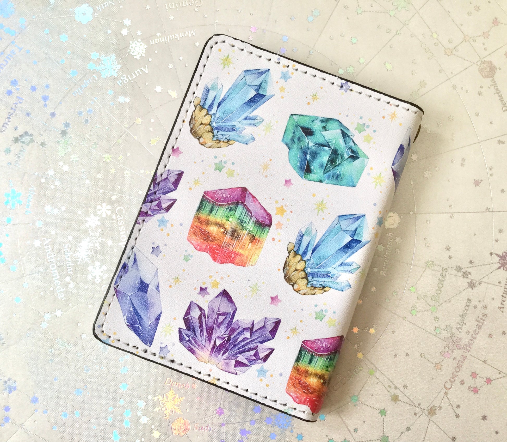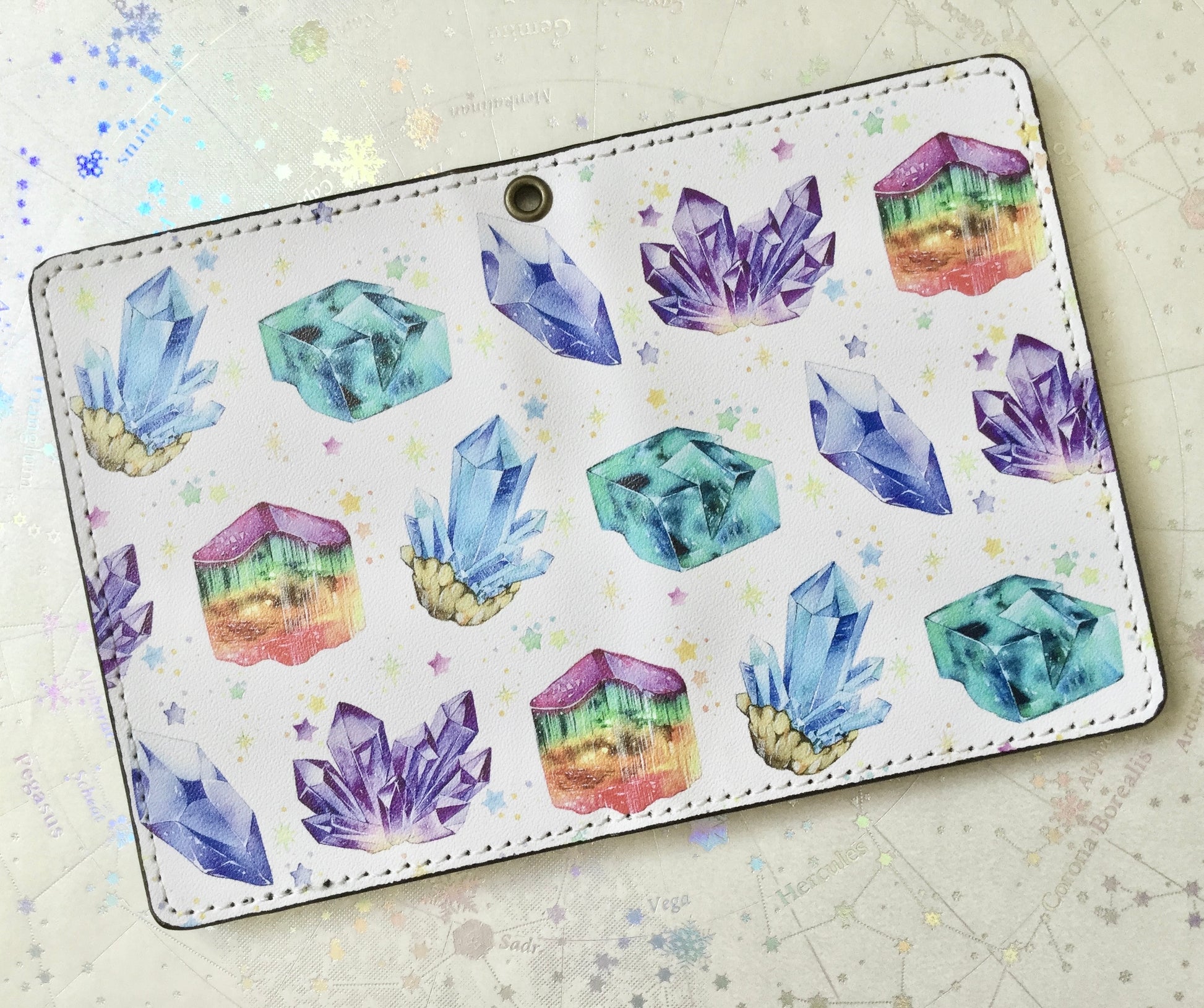 水彩で描いた鉱石のイラストをパスケースにしました。