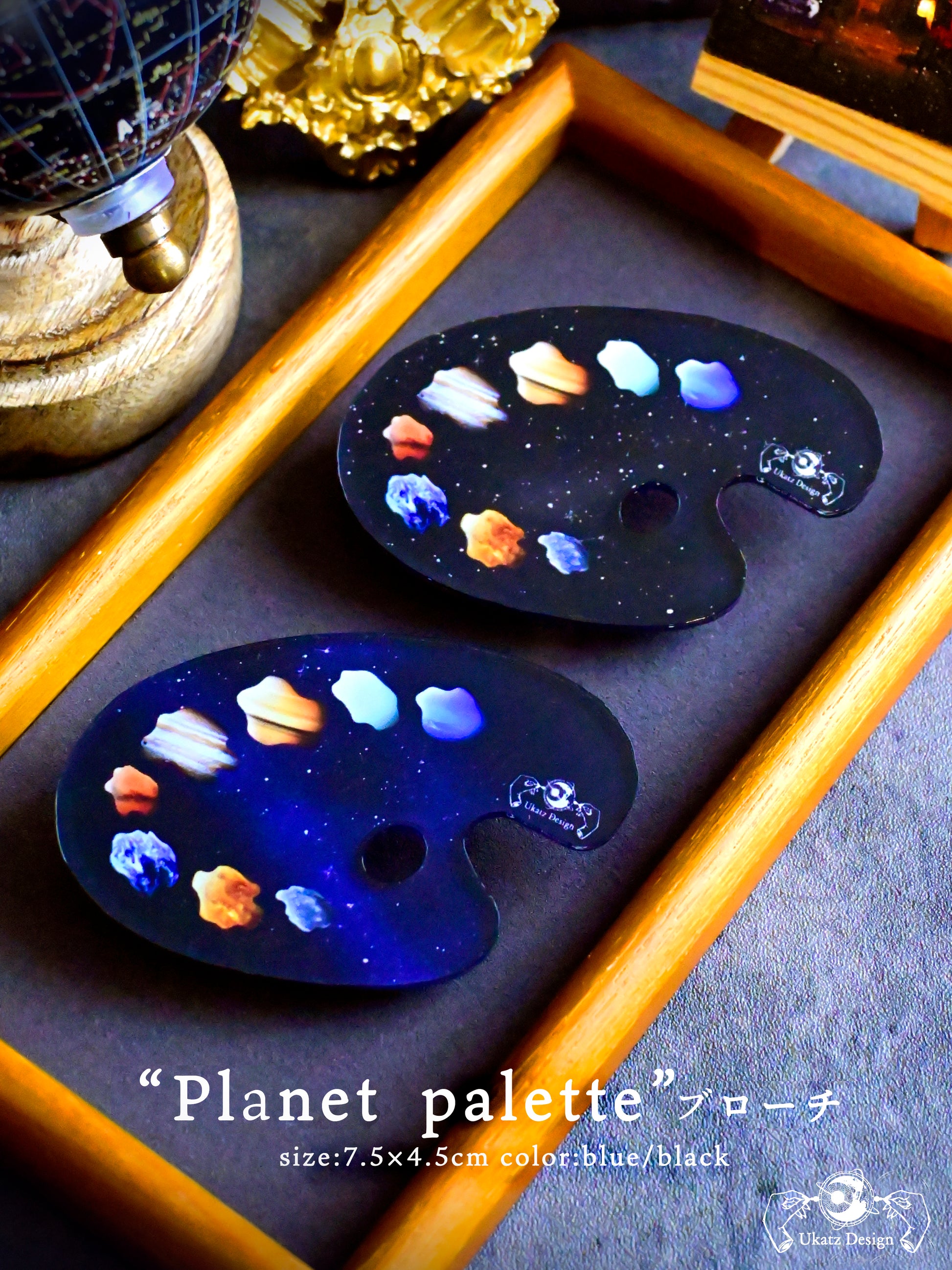 "Planet Palette"ブローチ(ブルー/ブラック)