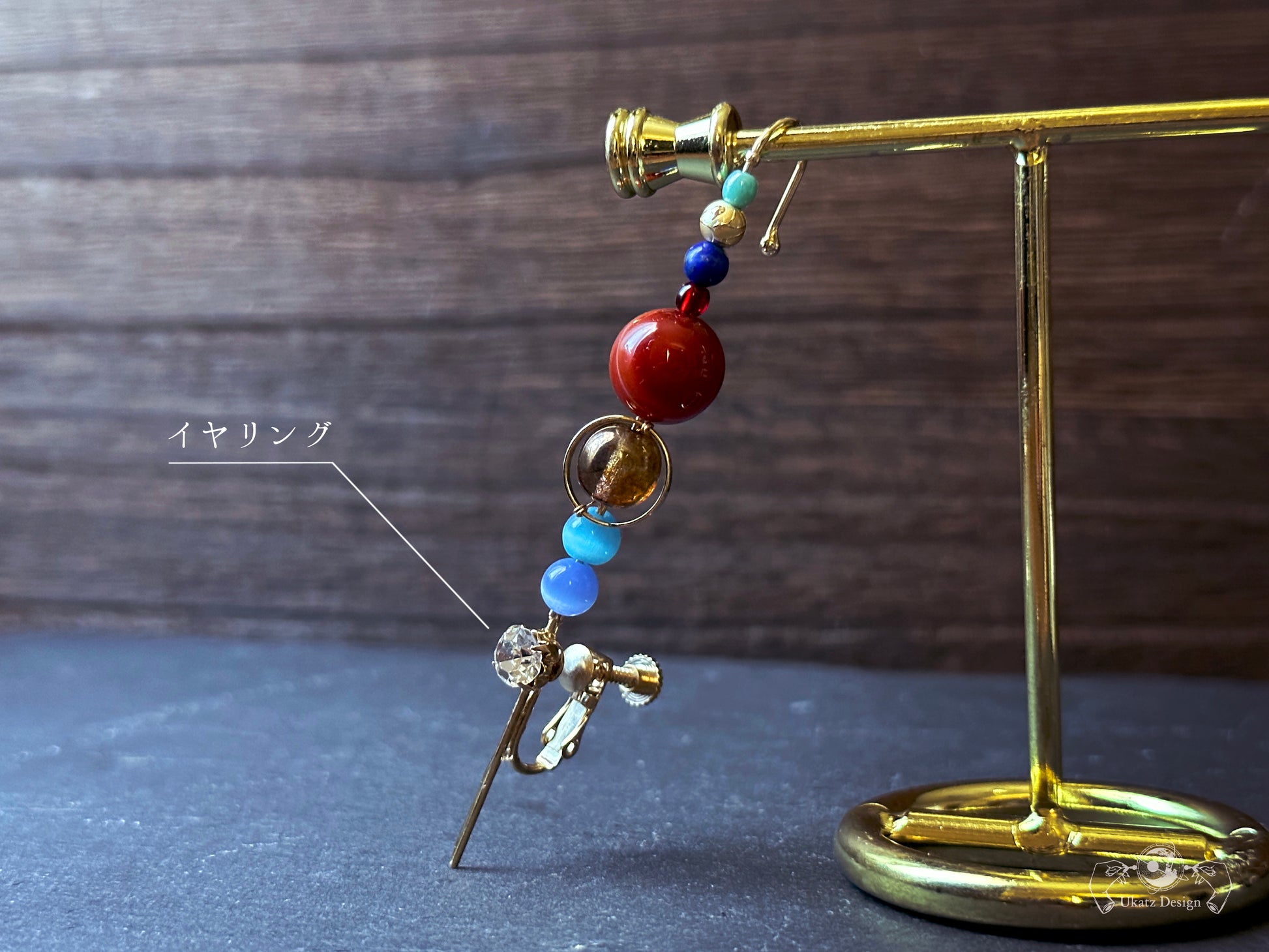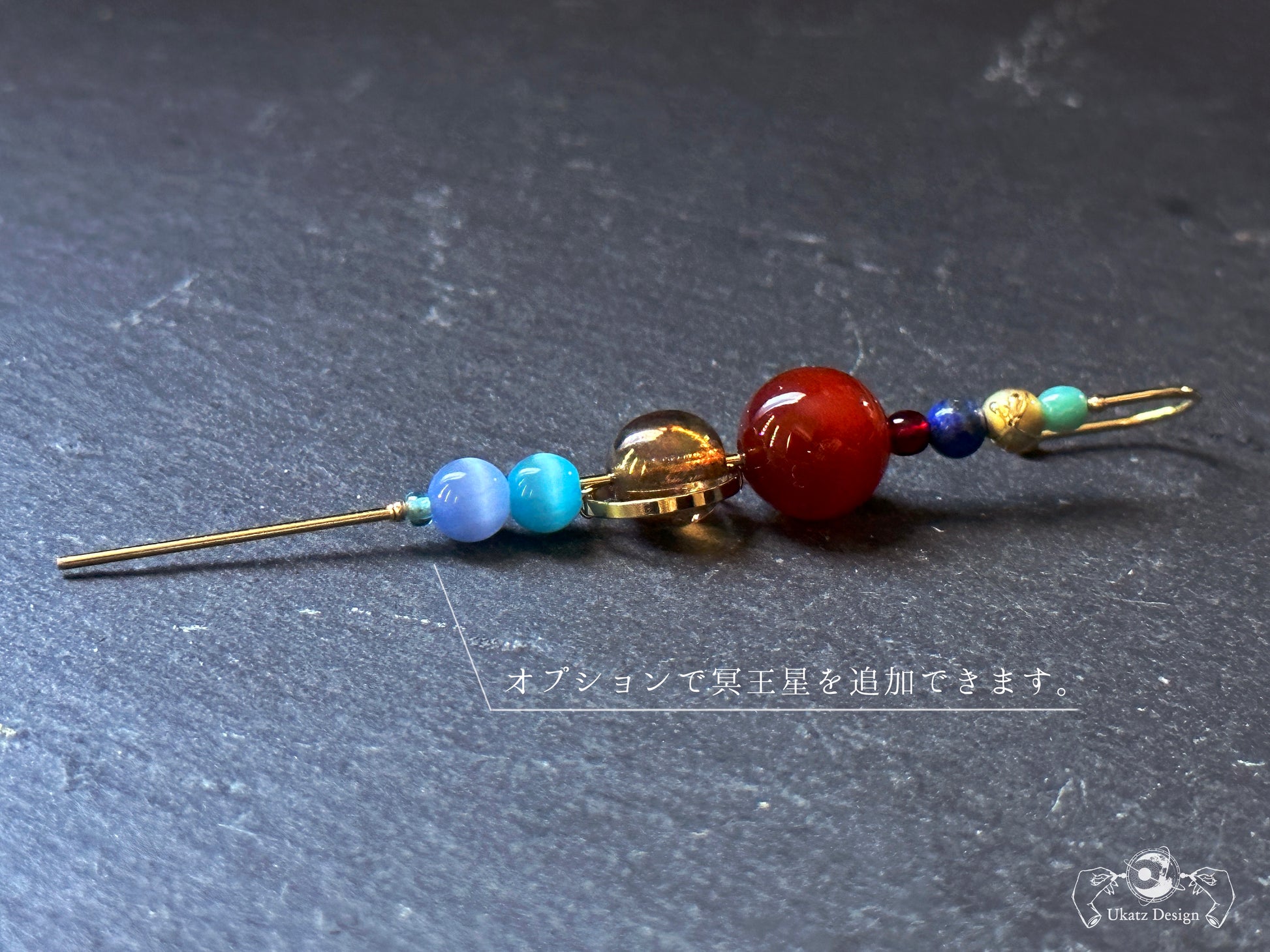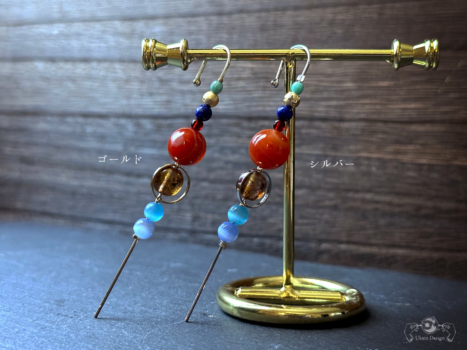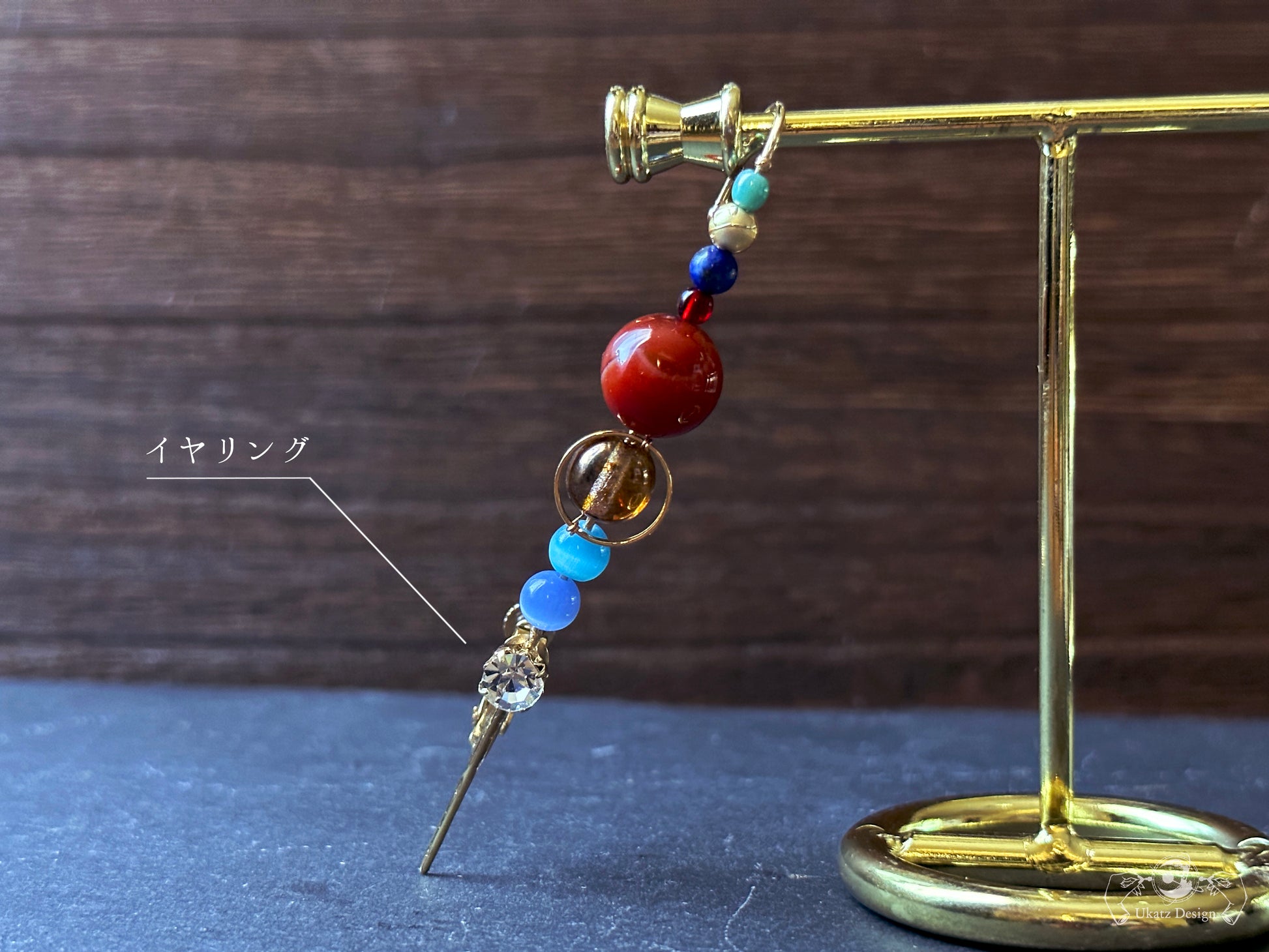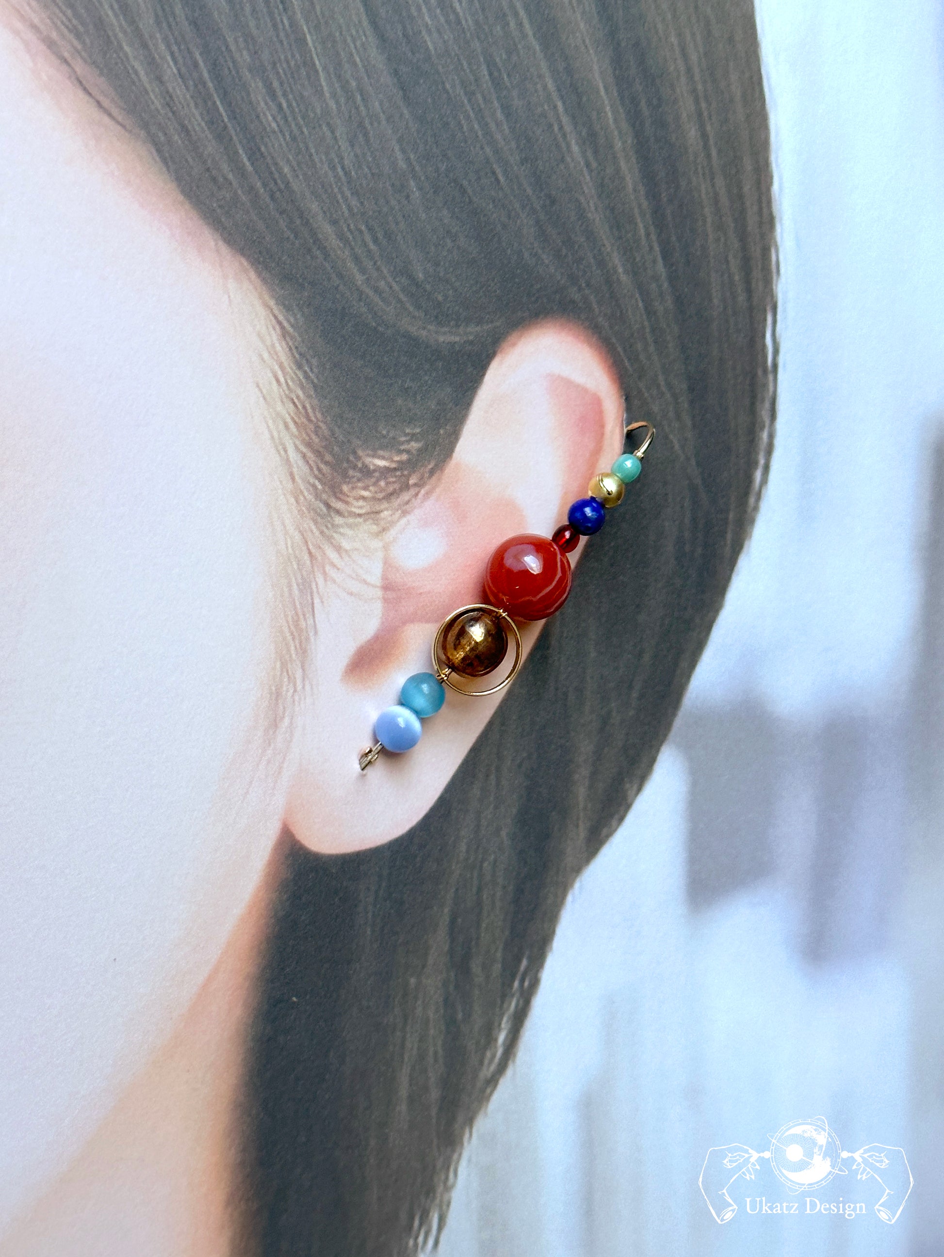 太陽系の惑星をゆるく縮小再現した、存在感抜群の片耳フックピアス。