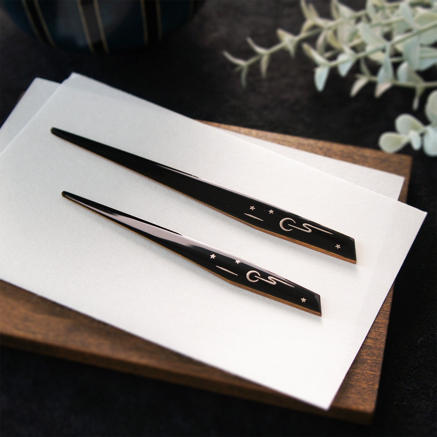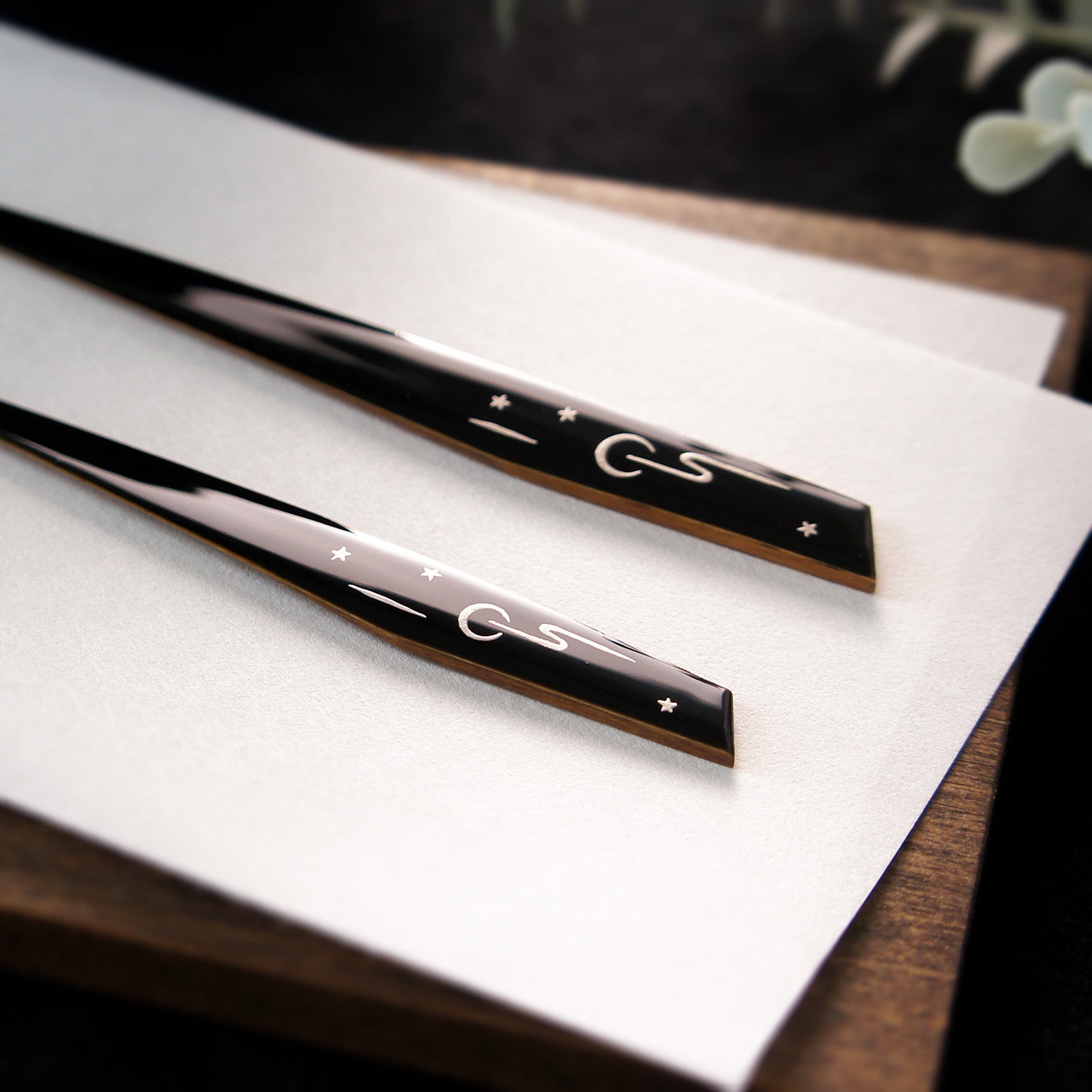 春の夜の情景「おぼろ月夜」をイメージした蒔絵(まきえ)の菓子切りです。