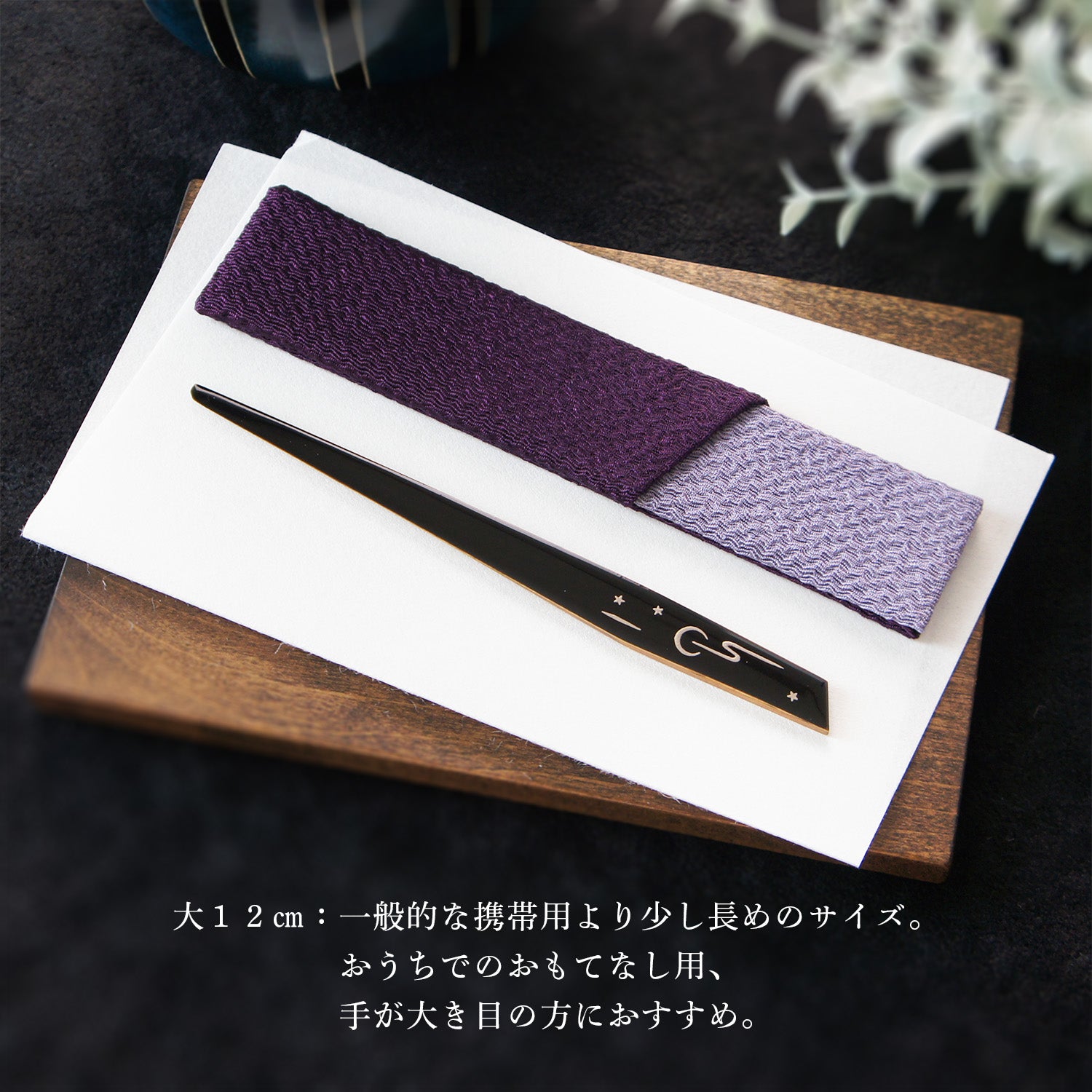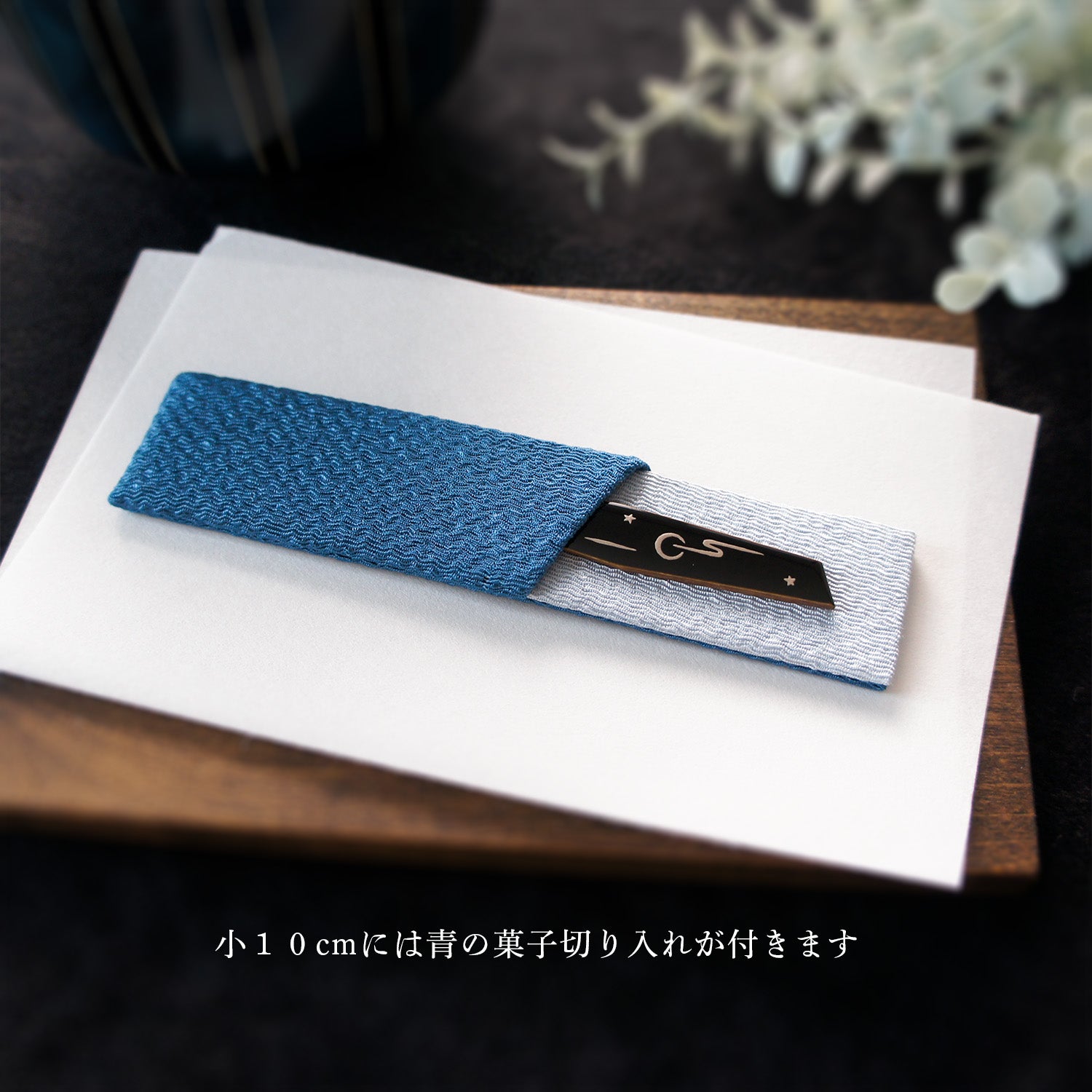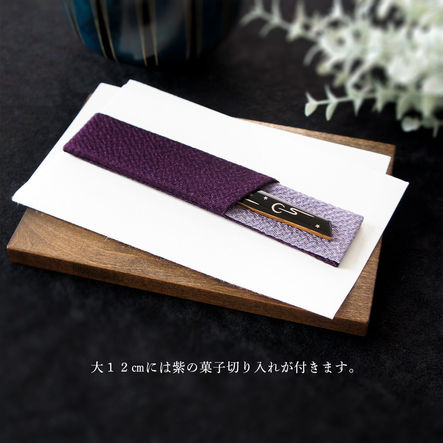 小10cmには青の、大12cmには紫の菓子切り入れが付きます。