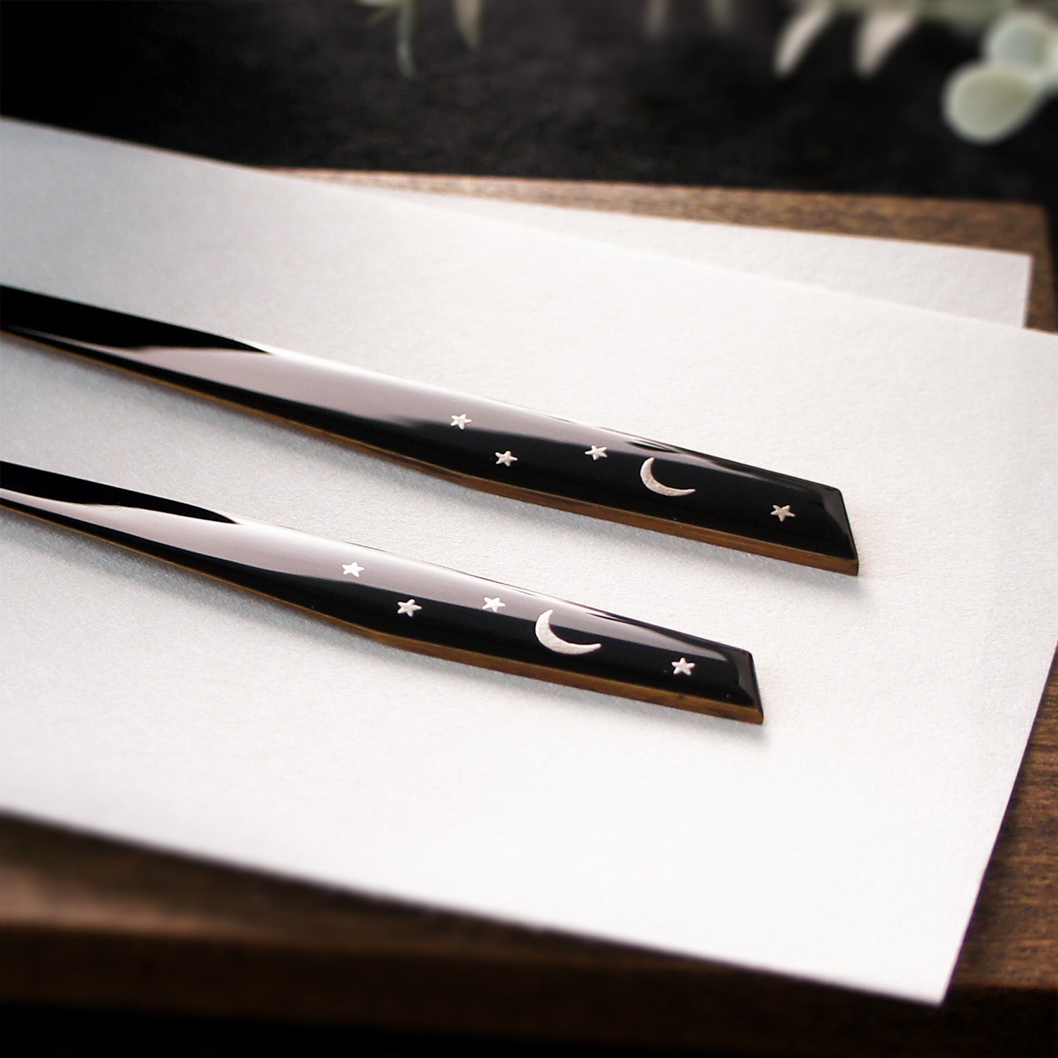 夜空に浮かぶ三日月と、きらめく星をモチーフにした