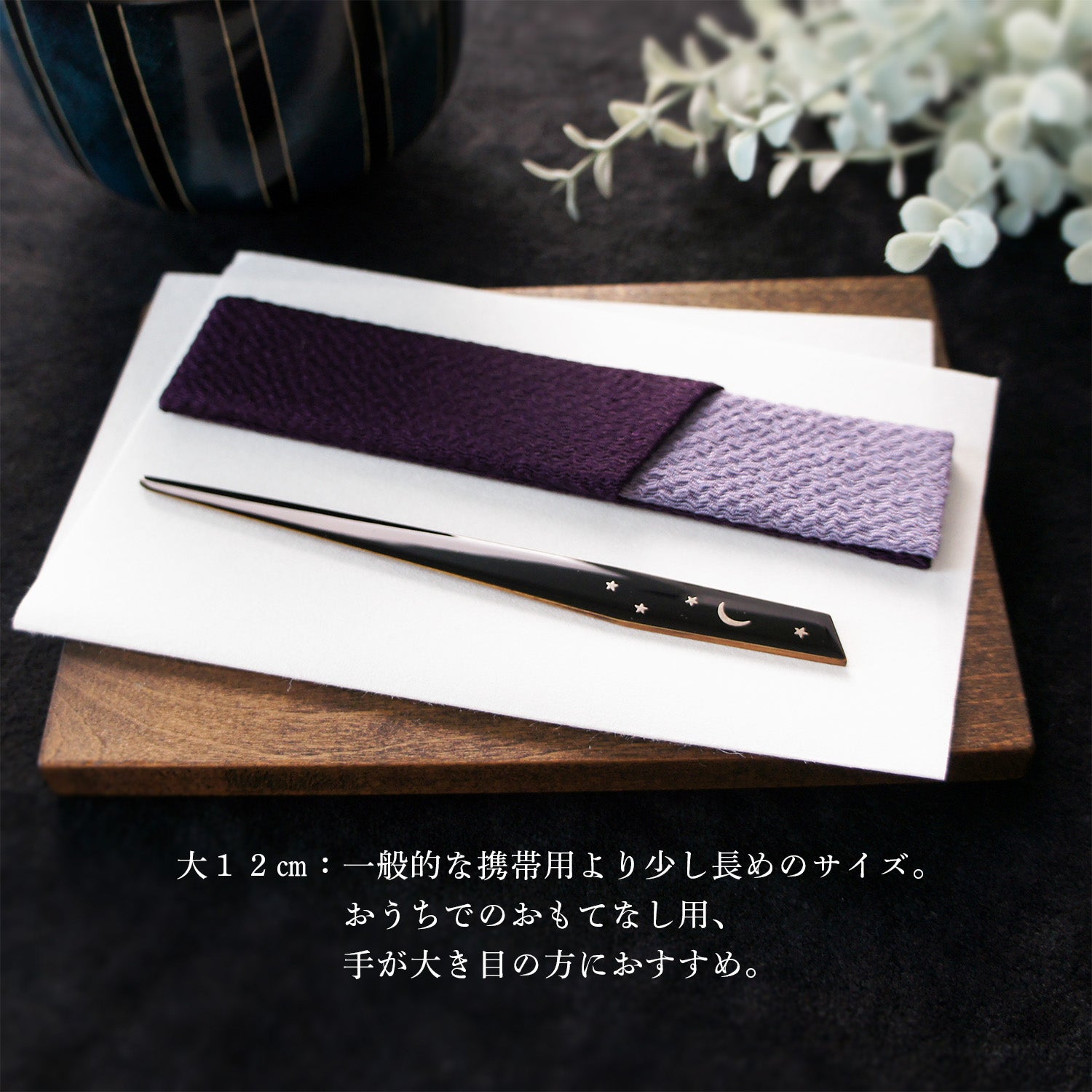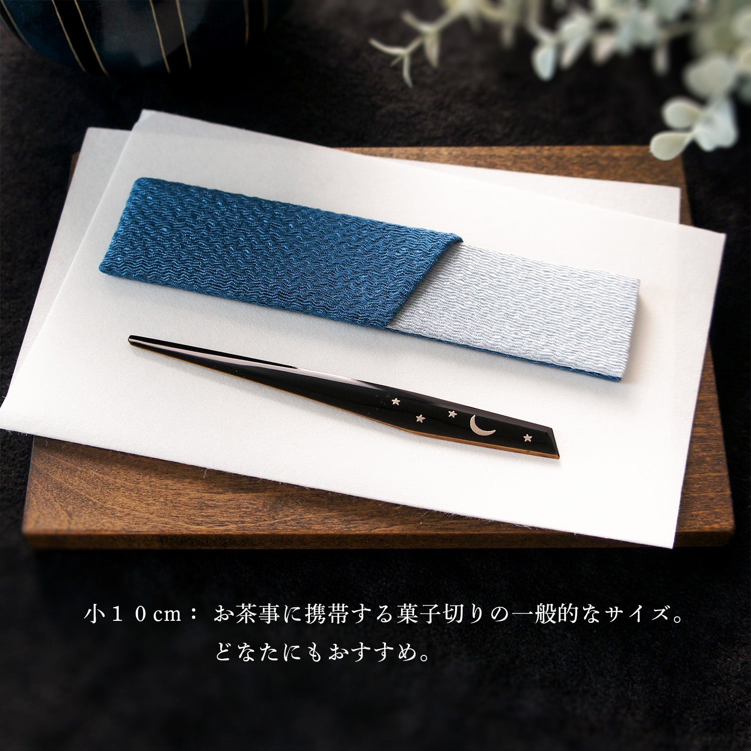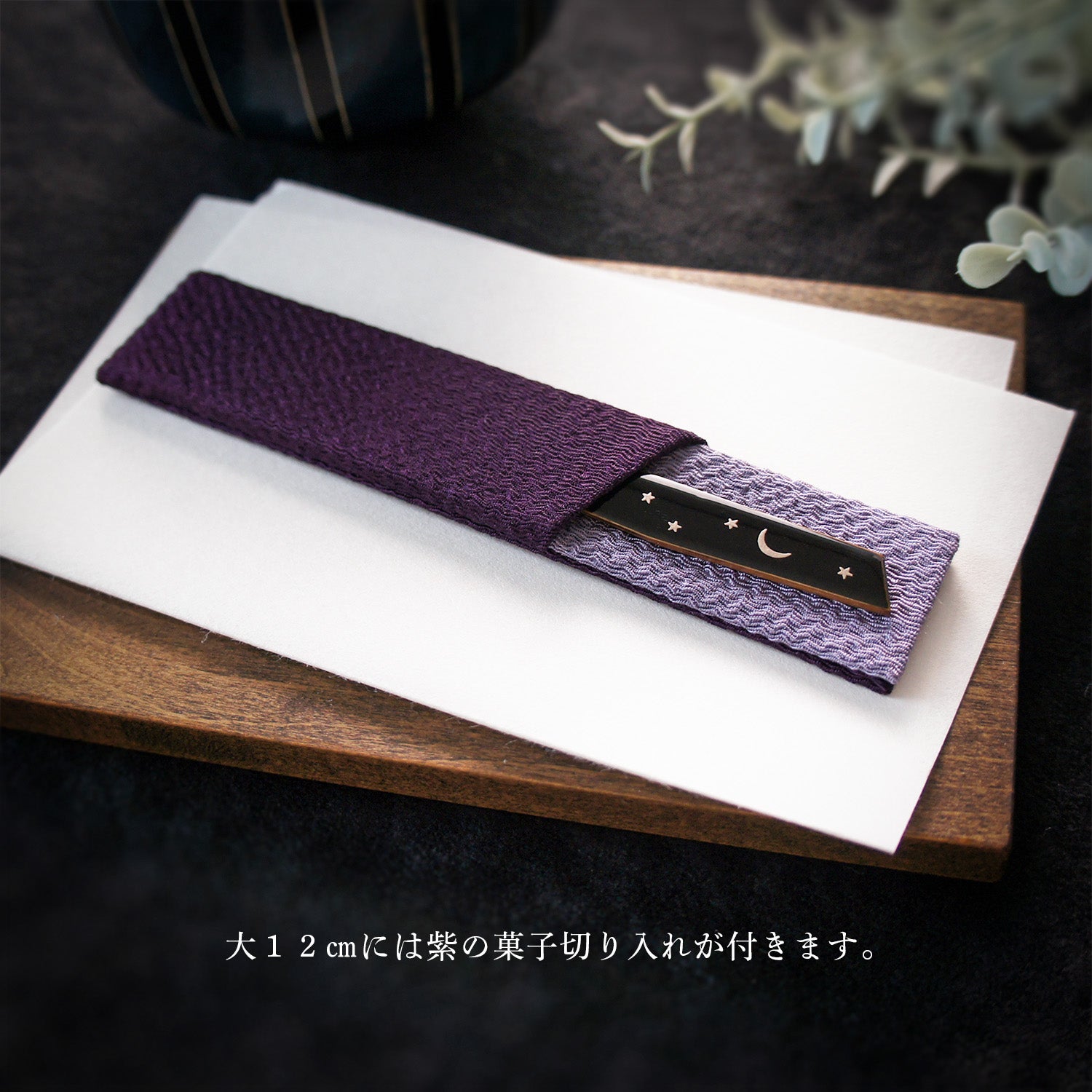 小10cmには青の、大12cmには紫の菓子切り入れが付きます。