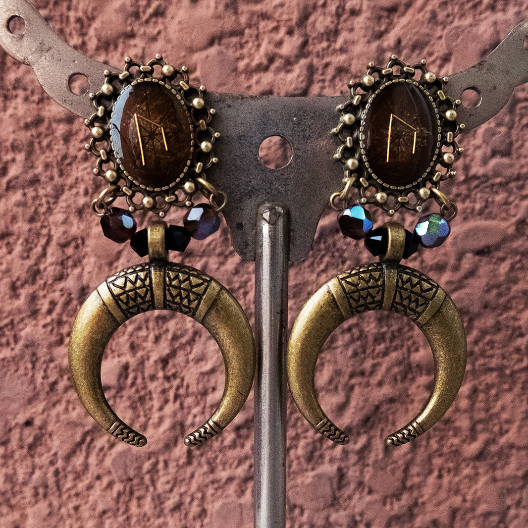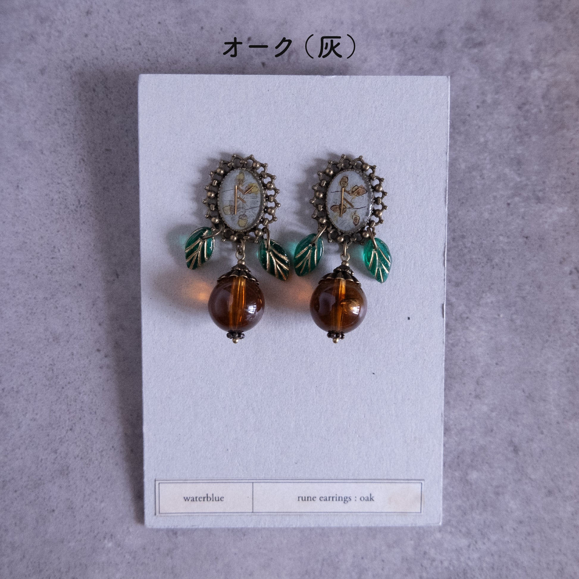 ルーン文字を描いたオリジナルパーツを使ったイヤリング。