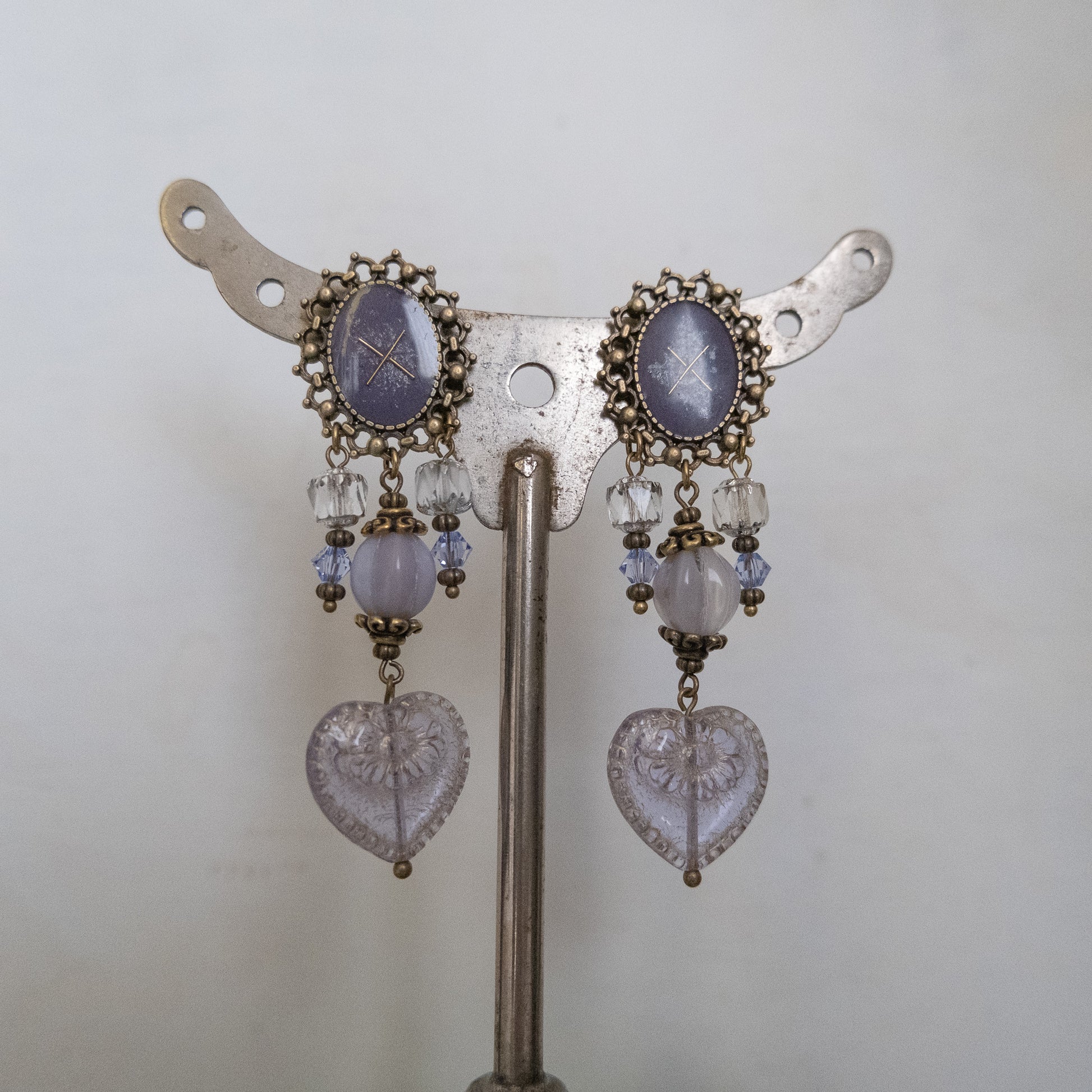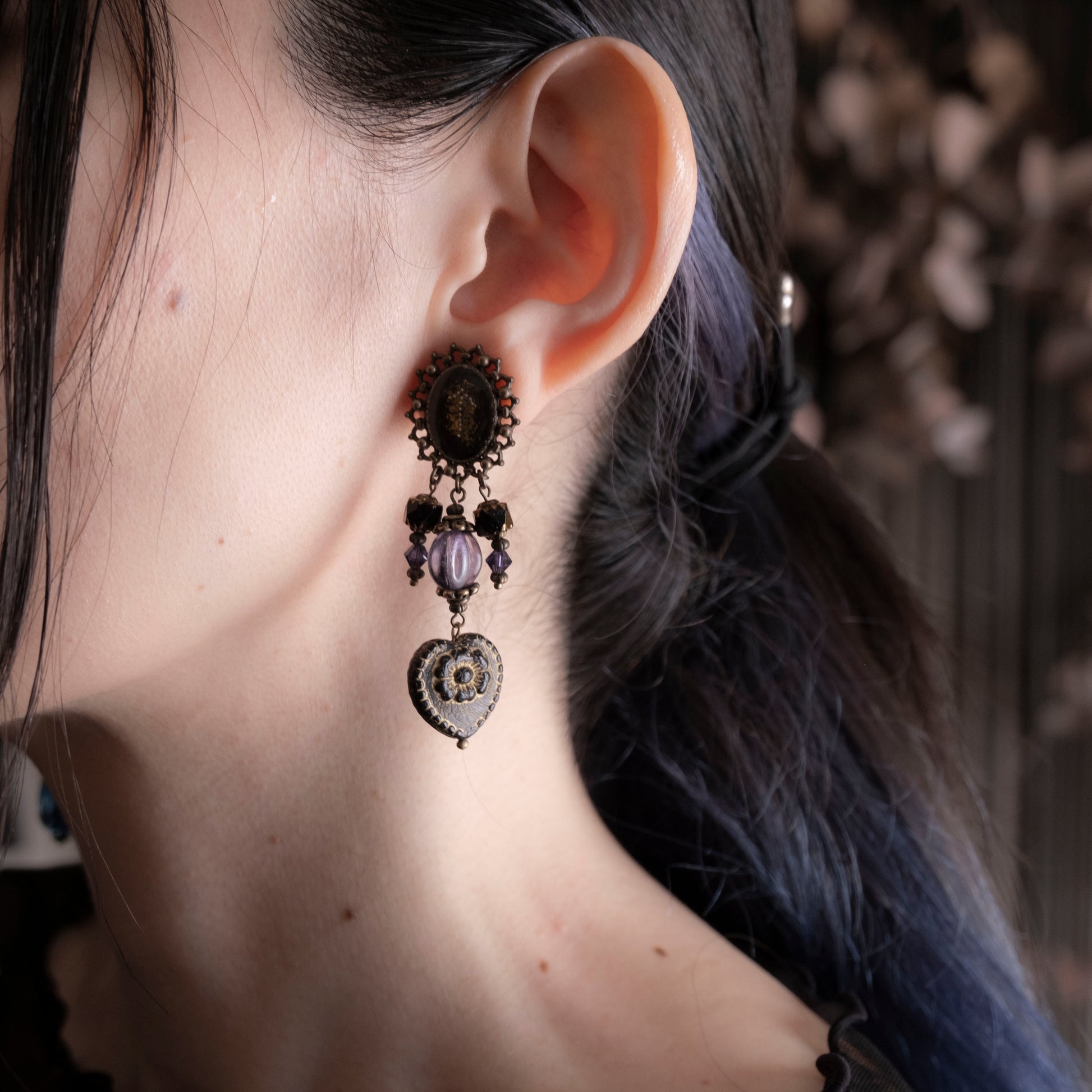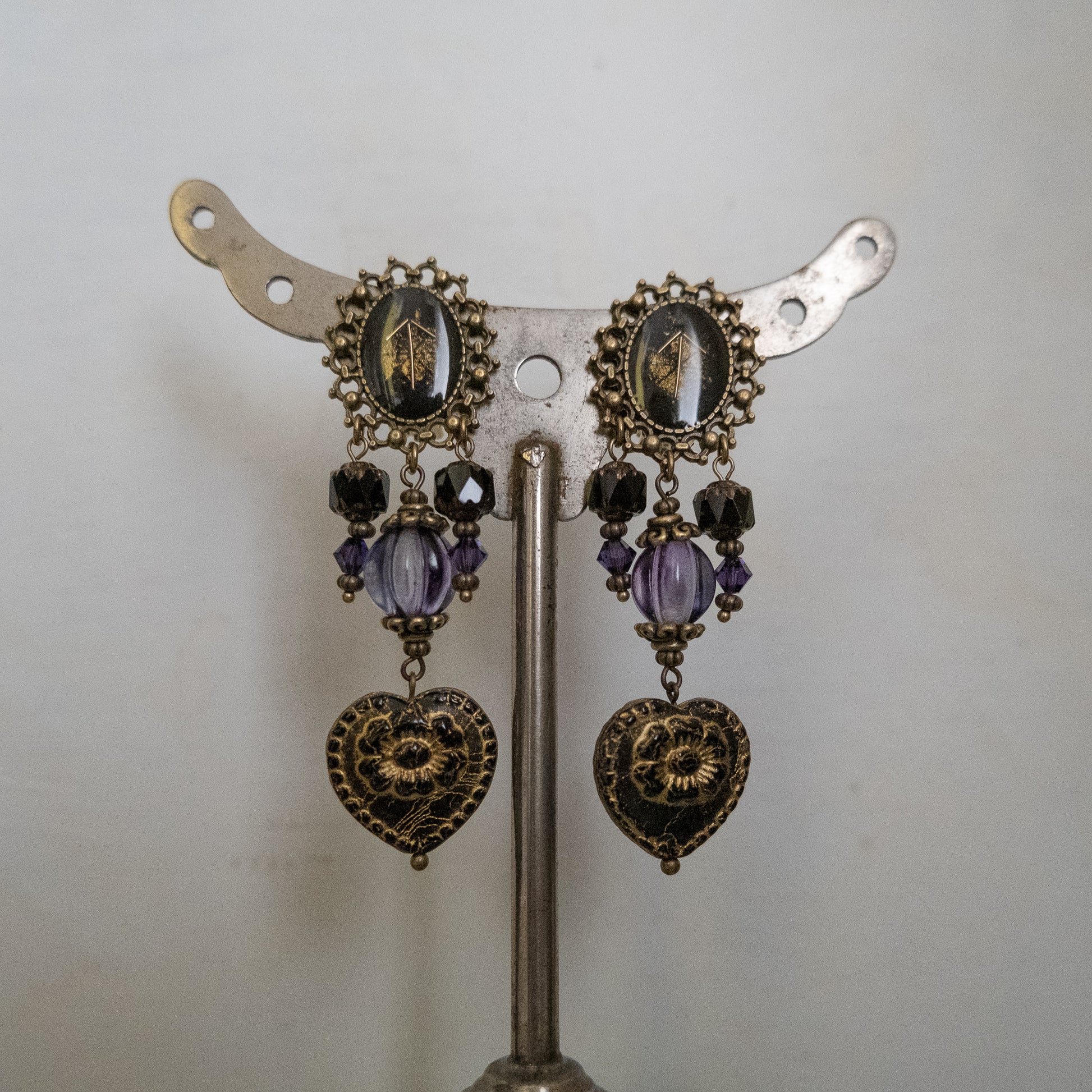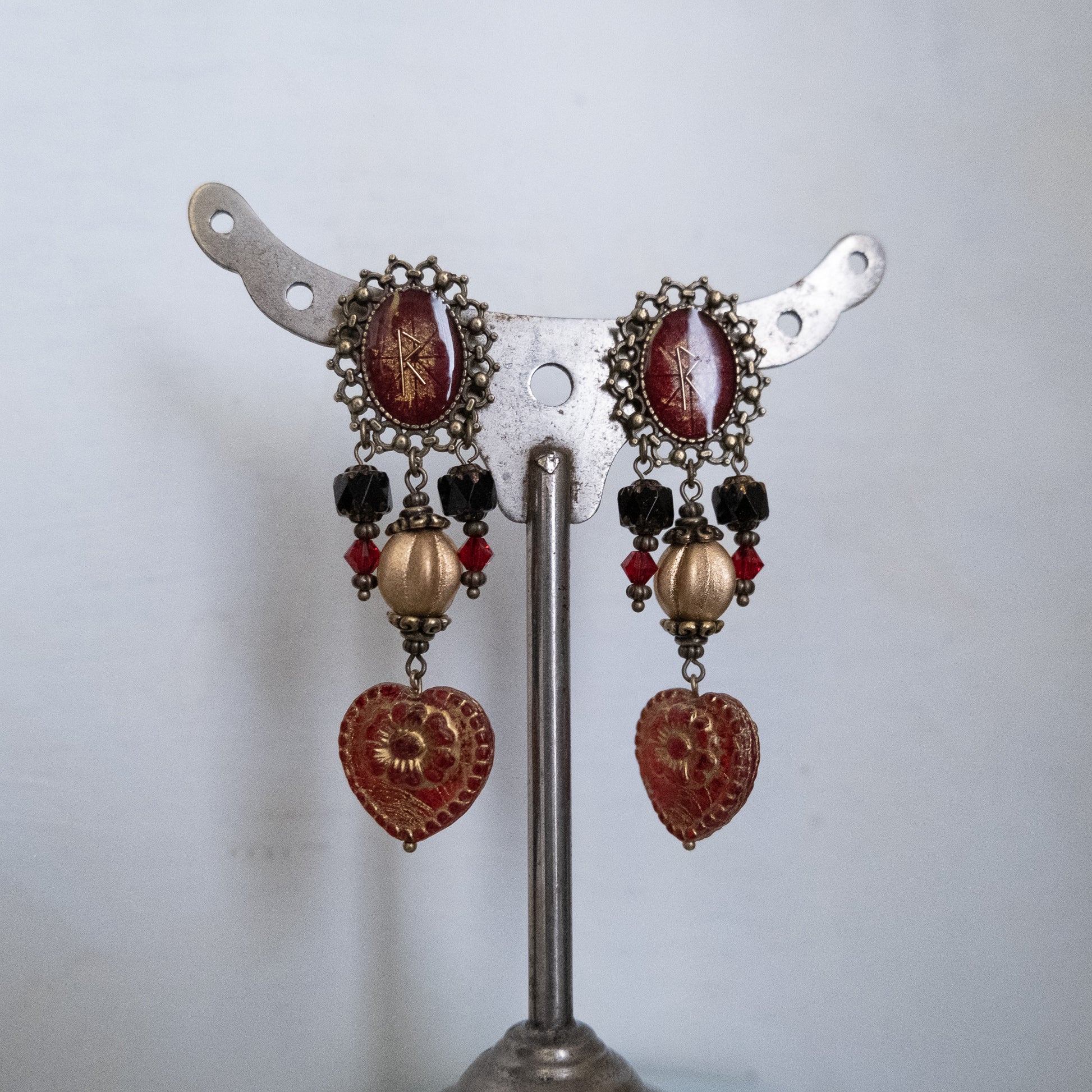 ルーン文字を描いたオリジナルパーツを使った耳飾り。