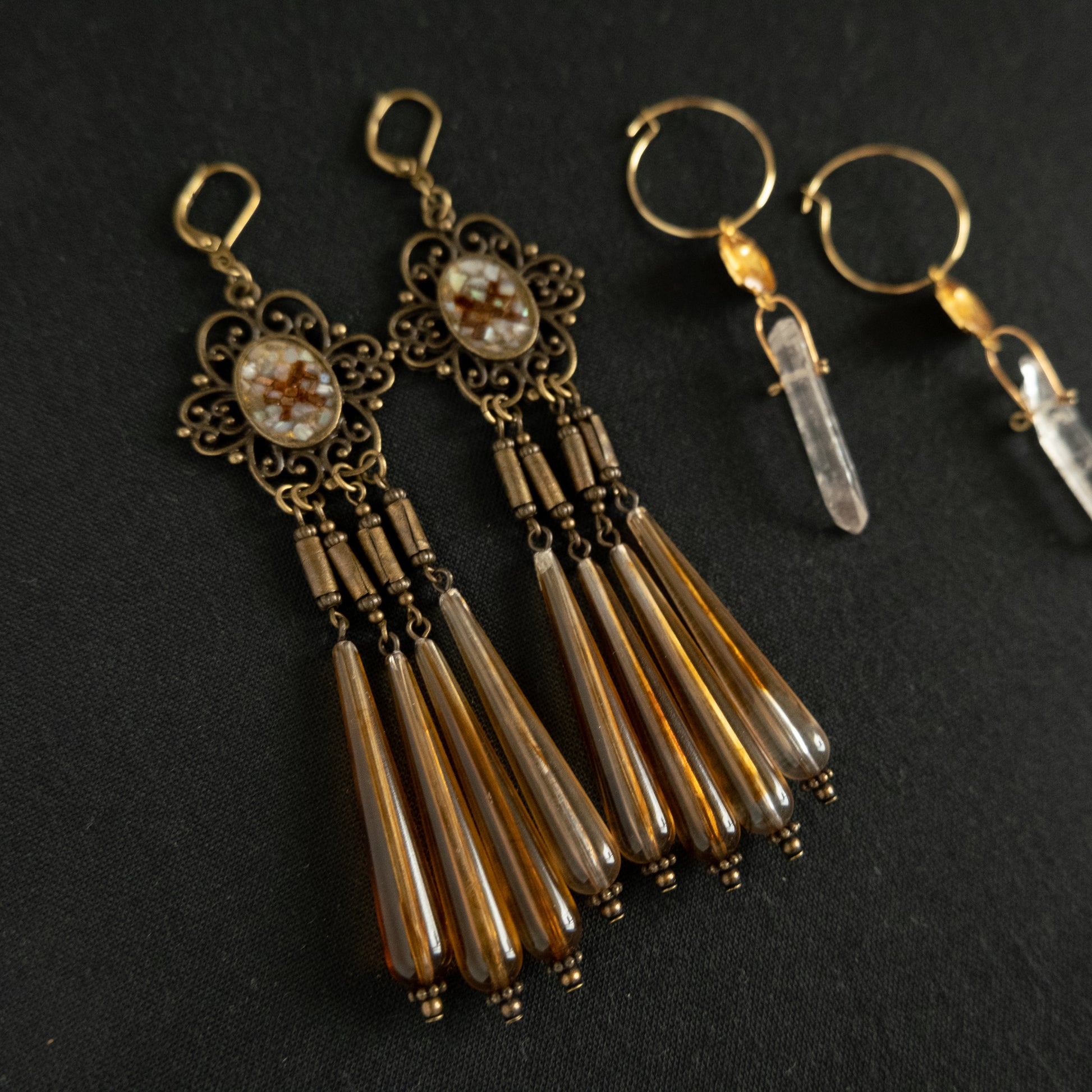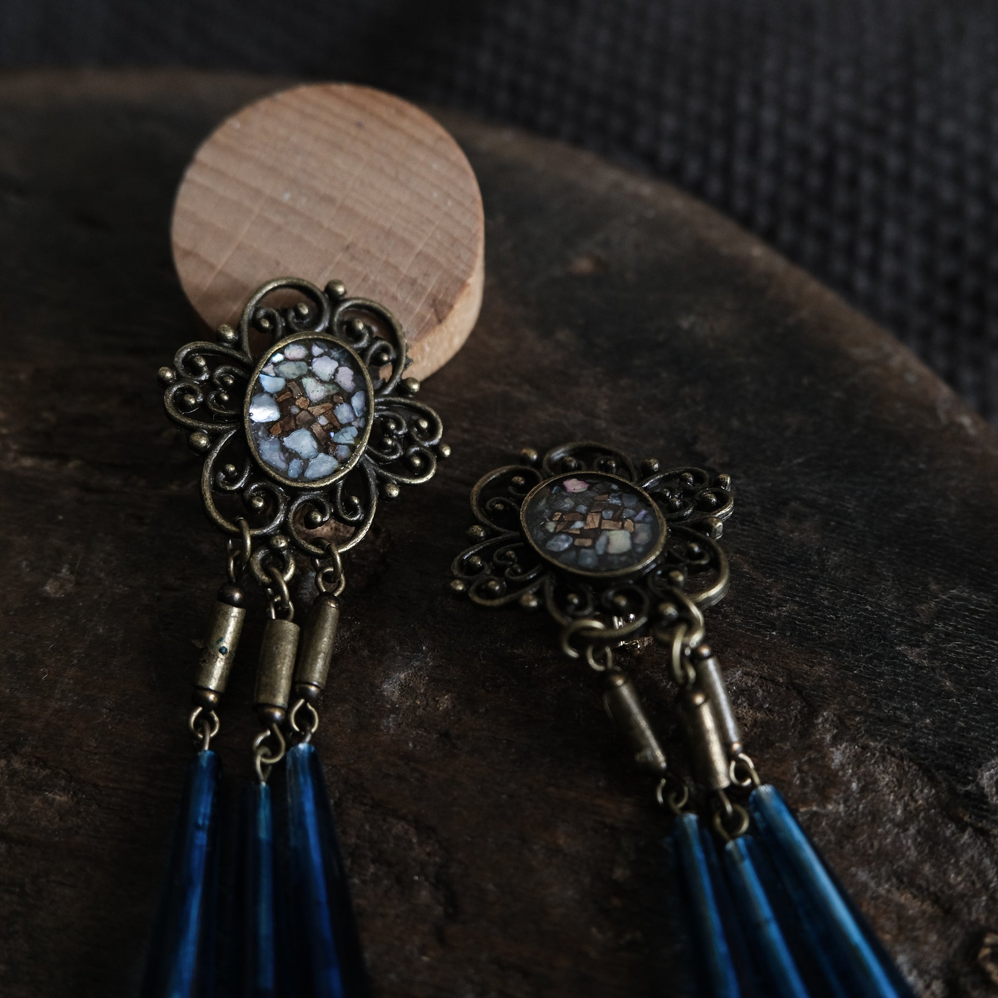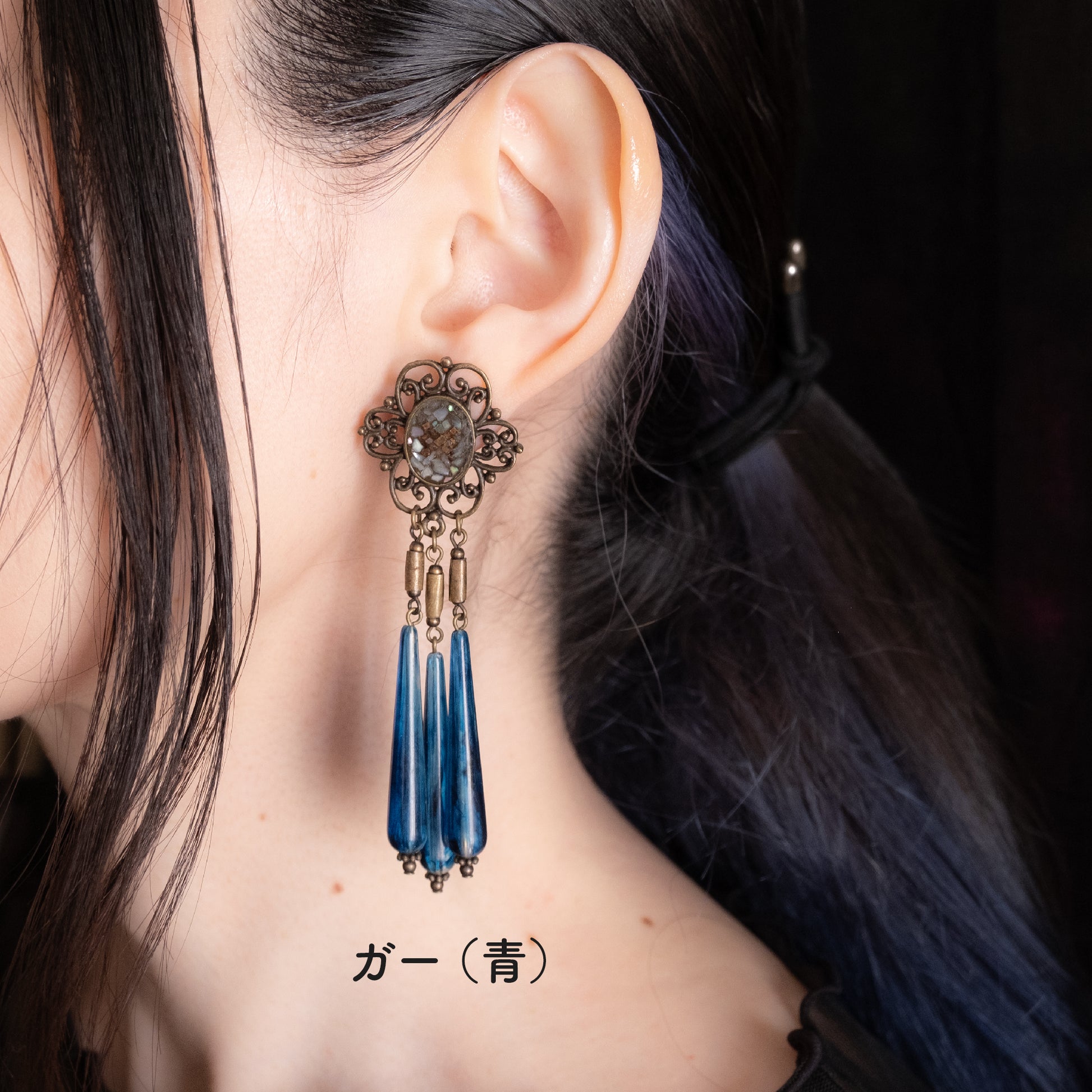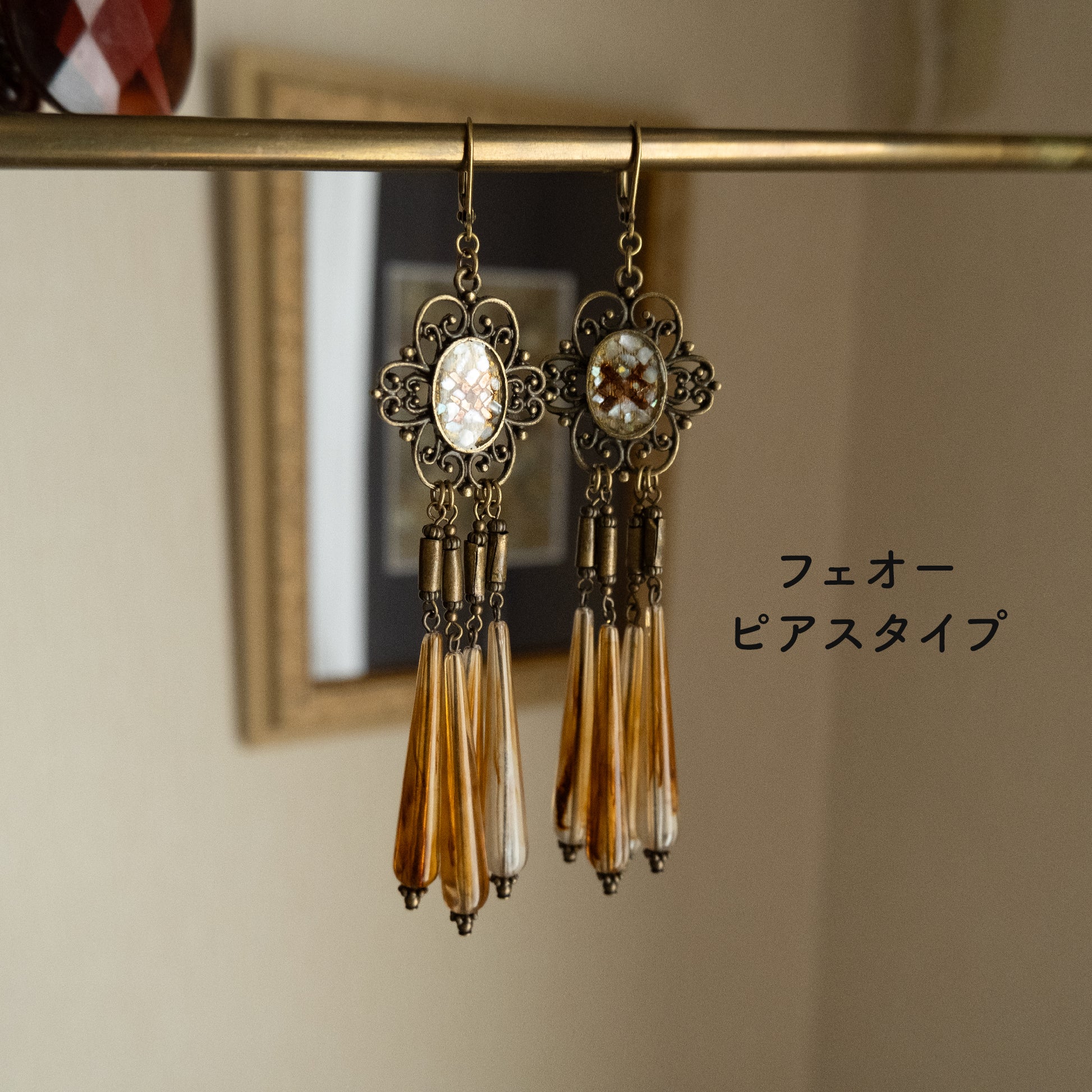 ルーン文字を描いたオリジナルパーツを使ったピアス/イヤリング。